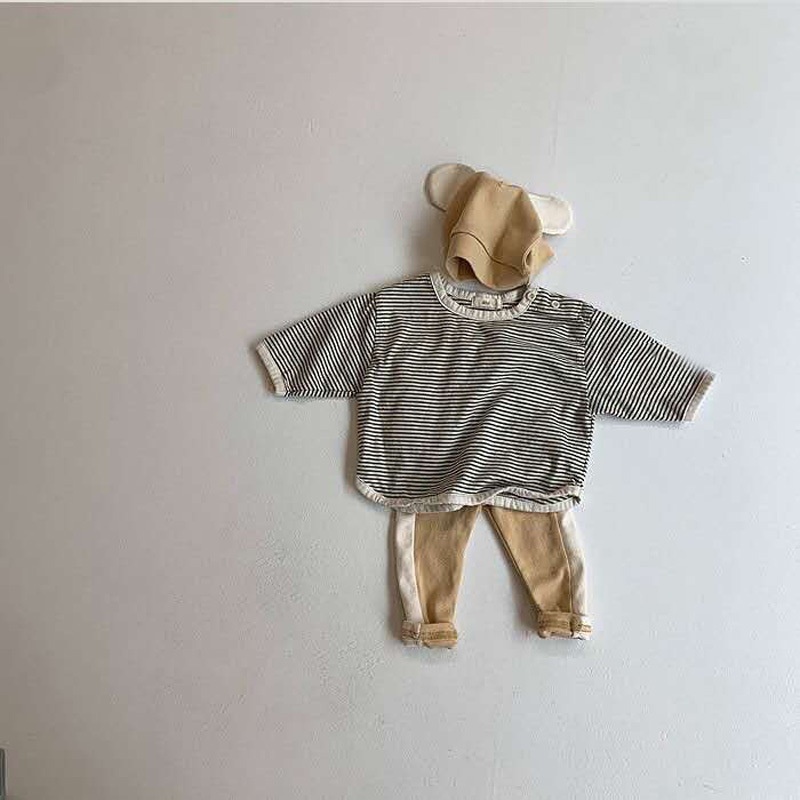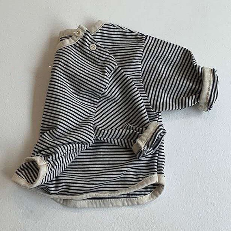 Infant Soft Striped T-shirt Male And Female Baby Shoulder Buckle Round Neck Bottoming Shirt Foreign Style Top Korean Spring And Autumn