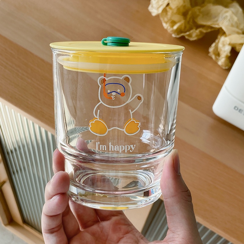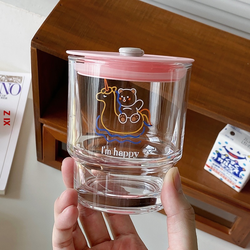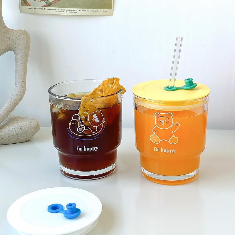 Tushan Yaya Japanese And Korean Style Glass Straw Cup Bear Water Cup Girl Heart Cup Student Milk Juice Cup