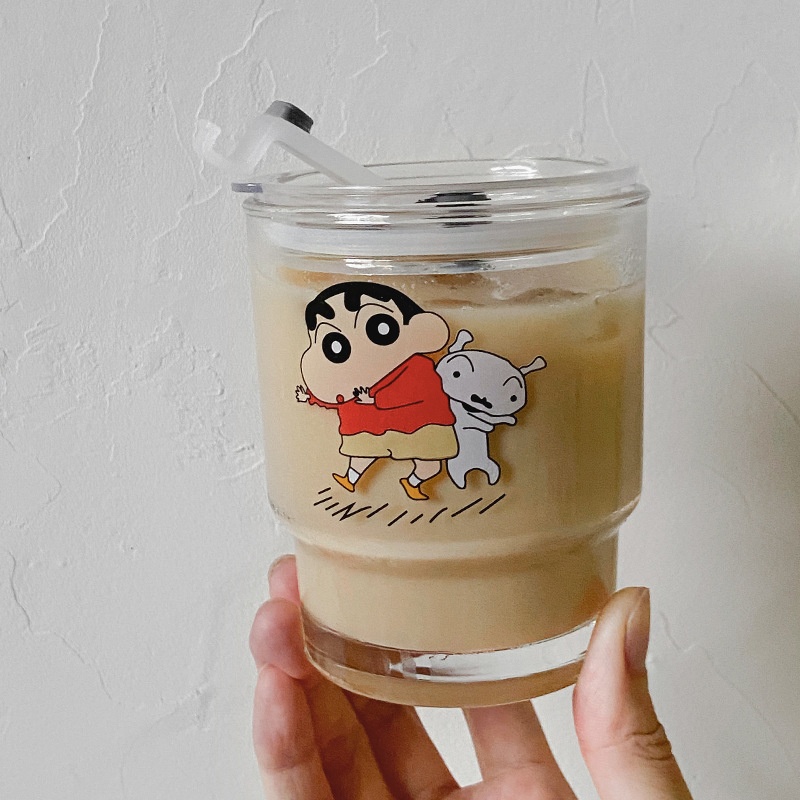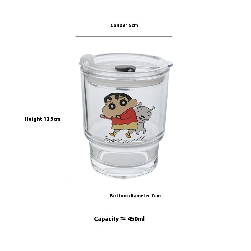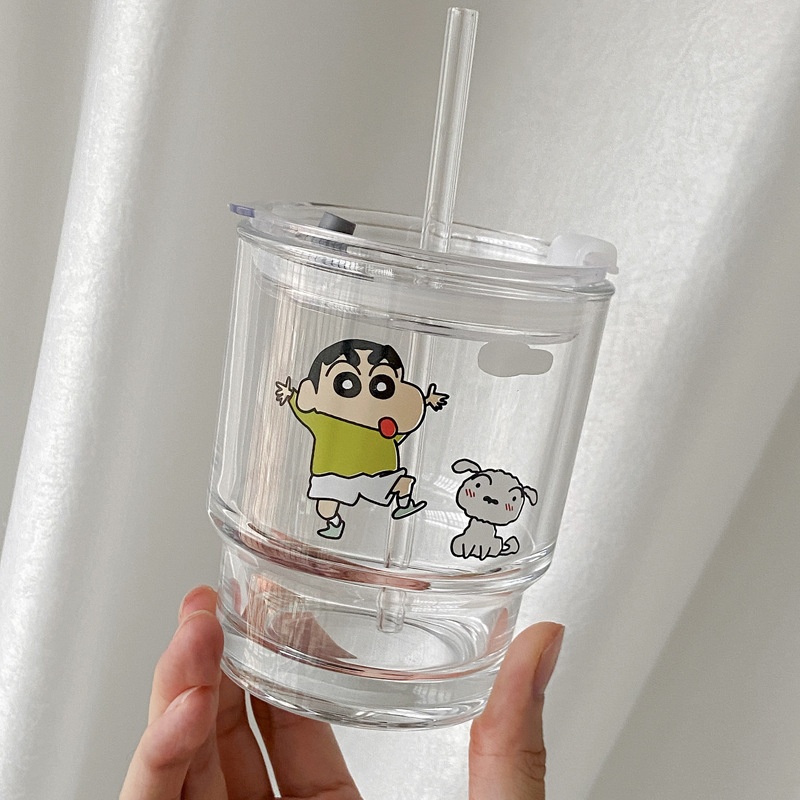 Cartoon Style Glass Straw Cup Large Capacity Student Milk Tea Cup Girl Heart Water Cup Juice Cup Milk Cup