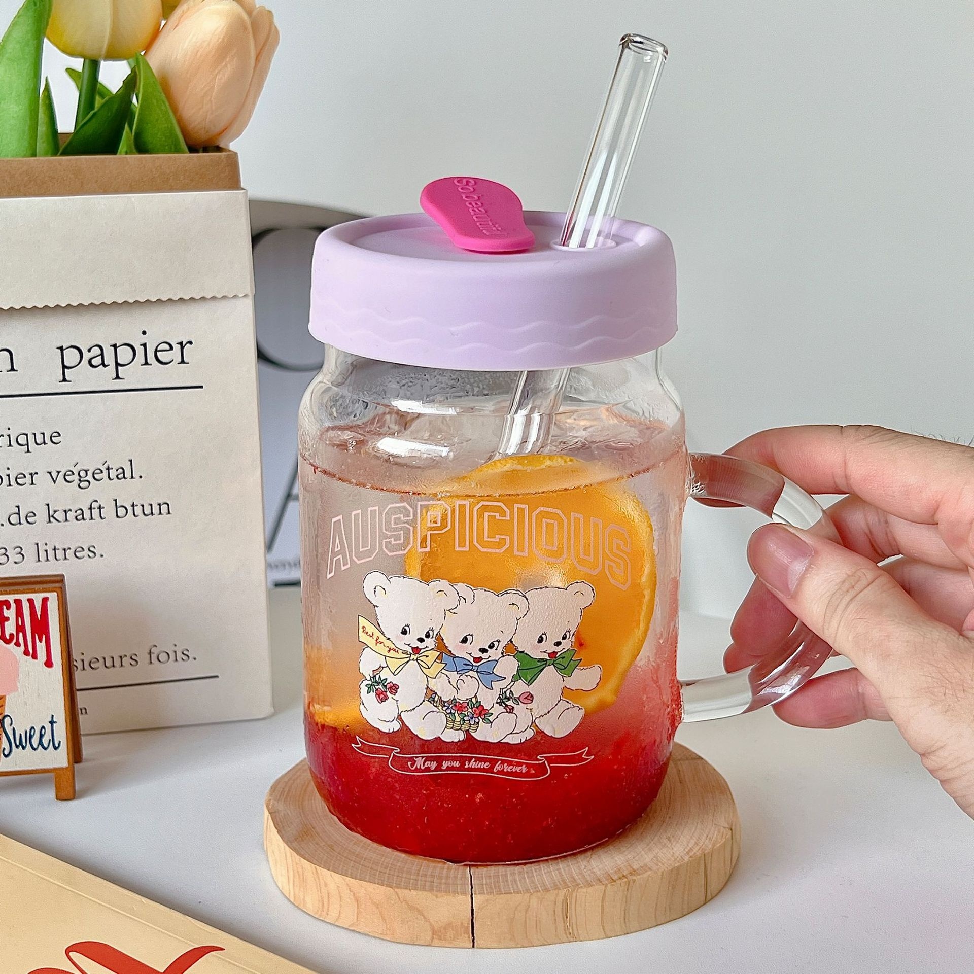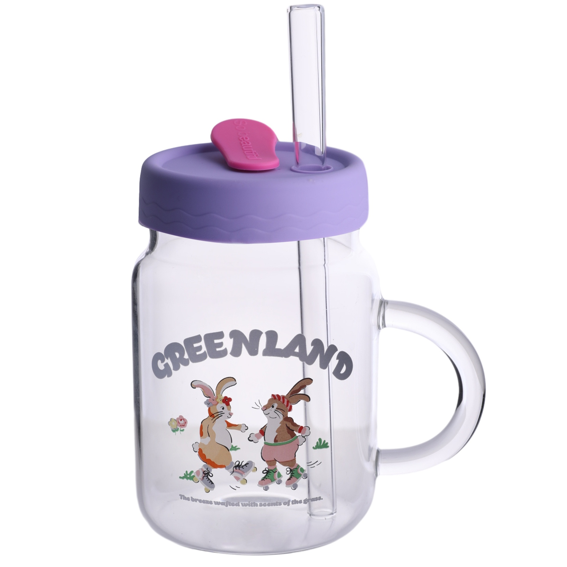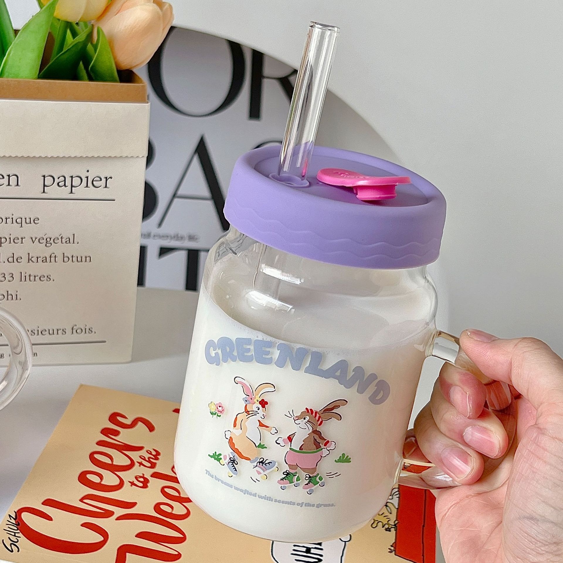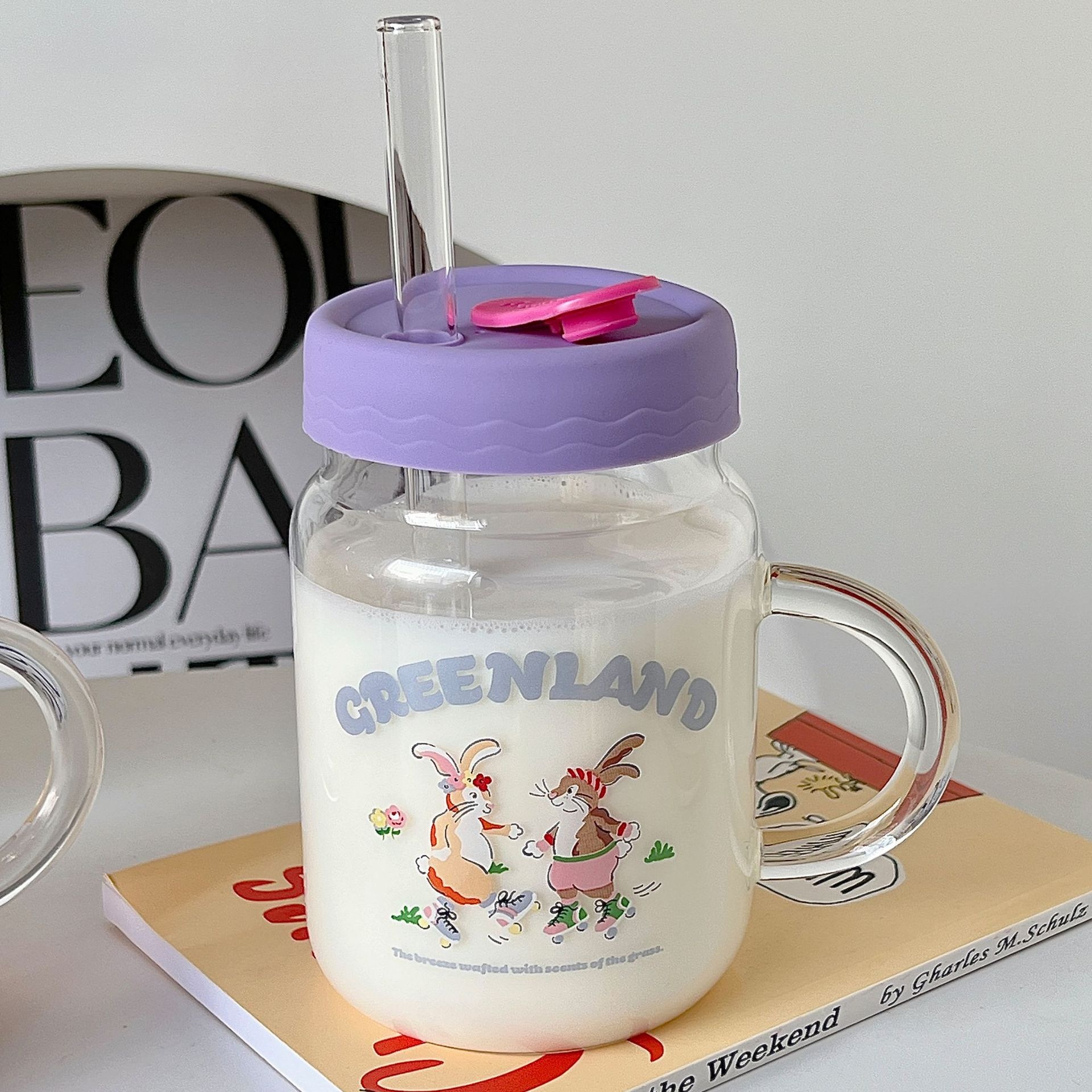 Bolimei Korean Style Glass Straw Cup Girl Heart Water Cup Student Drinking Water Cup Glass Cup