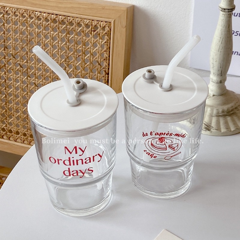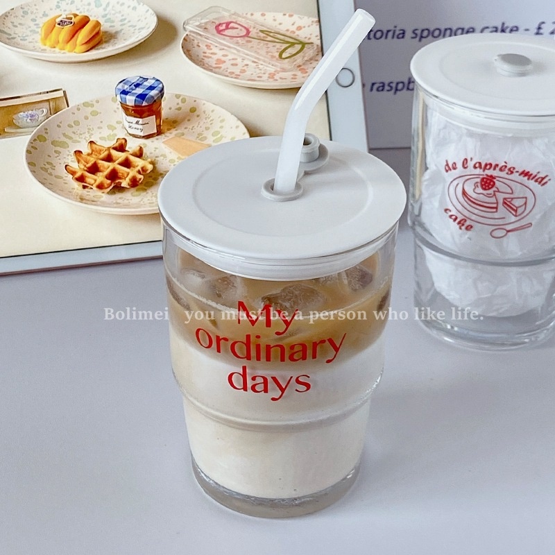 Bolimei School Season High-value Glass Straw Cup Student With Lid Water Cup Simple Glass Cup
