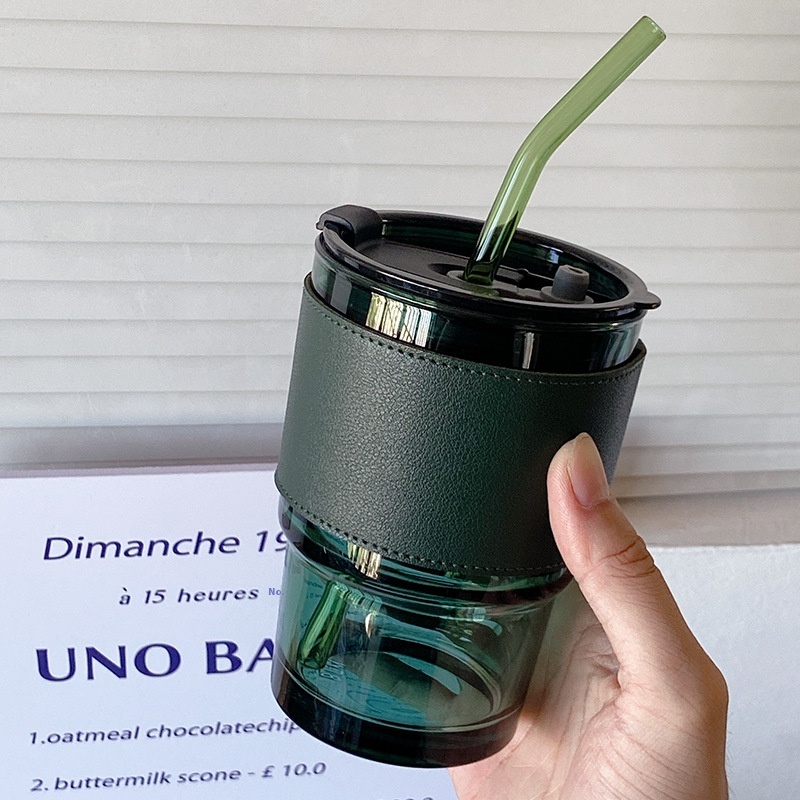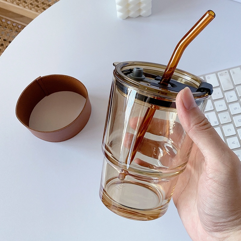 Bolimei High-value Glass Straw Cup Large-capacity Cup With Lid Milk Tea Cup Student Drinking Water Cup