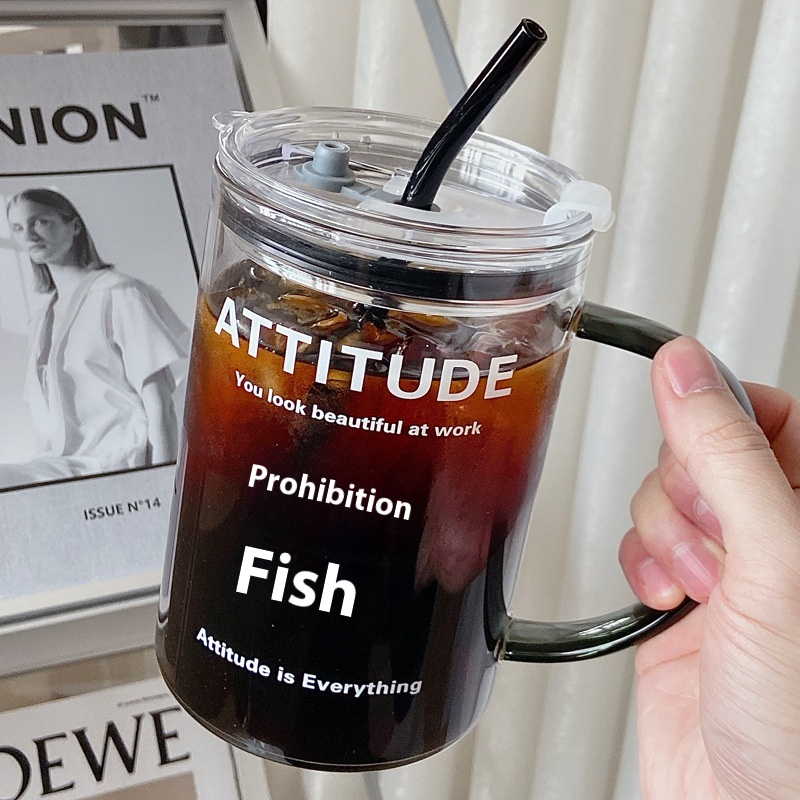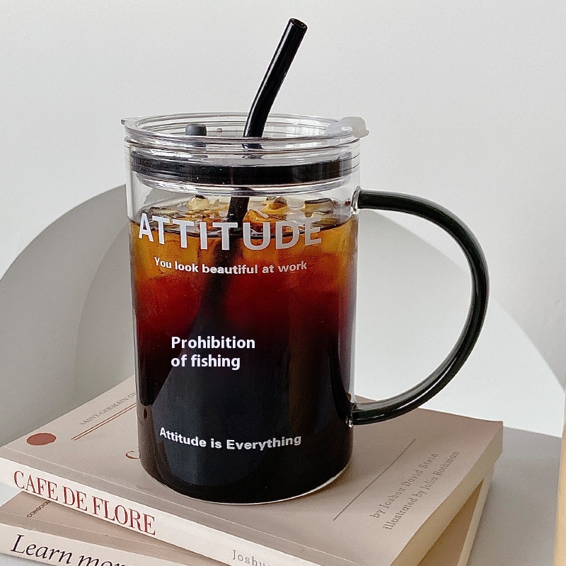 1000ml Glass Water Cup With Handle Straw Cup Office Large Capacity Drinking Water Cup High Temperature Resistant Net Celebrity Cup