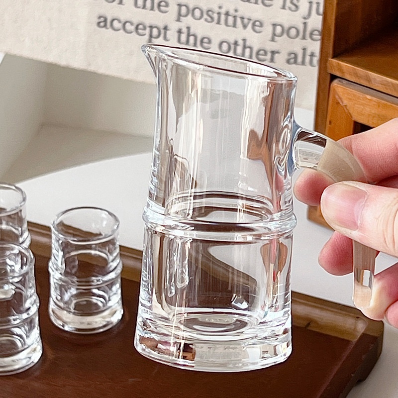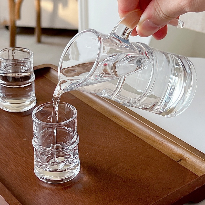 Bolimei Liquor Dispenser Liquor Cup Bamboo Glass Liquor Cup Creative Transparent With Handle Wine Pot