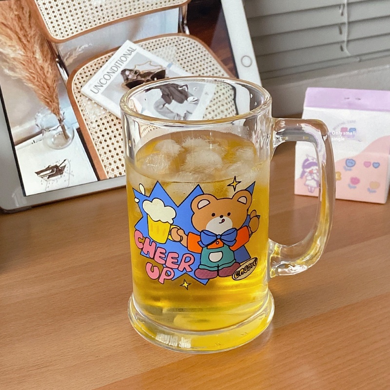 Designer Bear Glass Beer Cup Large Capacity Milk Tea Cup Summer Water Cup Cold Drink Cup Household Glass Cup
