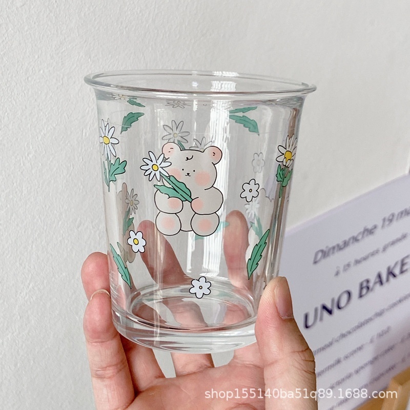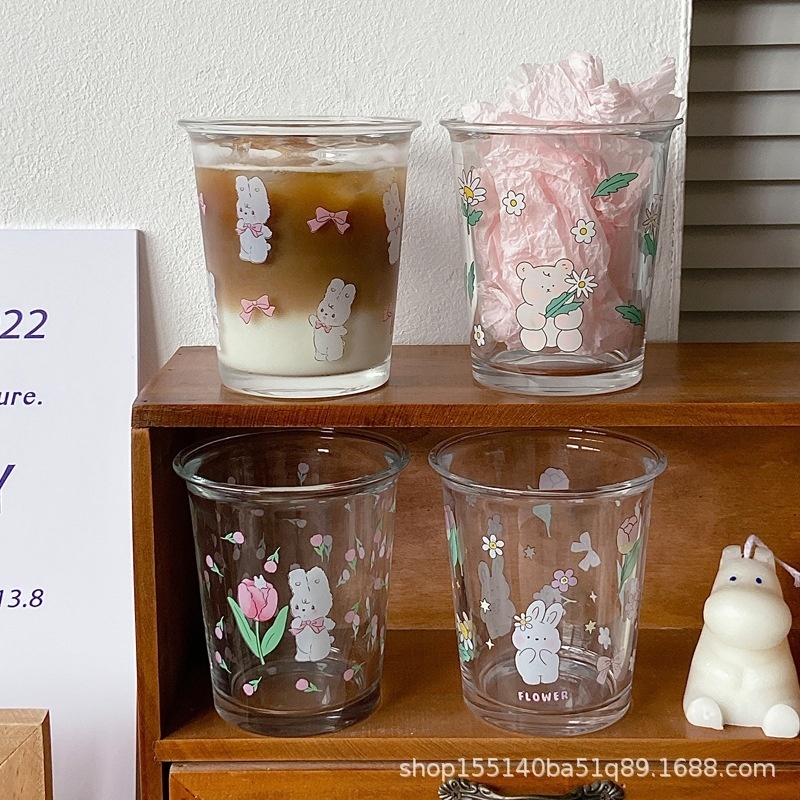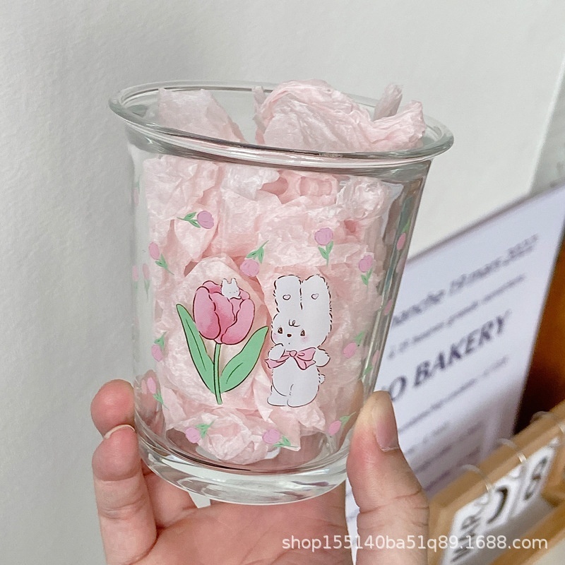 Lanchuang Style Glass Coffee Cold Brew Cup Girly Breakfast Flip Cup Tulip Glass