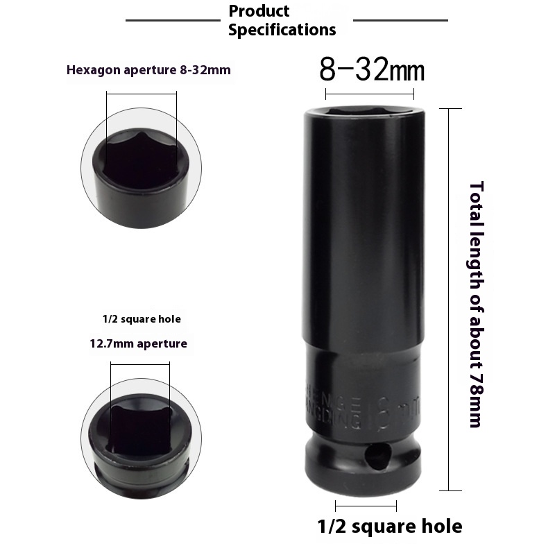 Wind Cannon Socket1/2 Electric Wrench Socket8-32 Shelf Woodworking Inner Hexagonal Air Cannon Socket Head