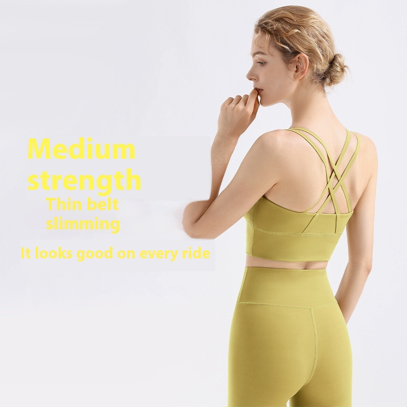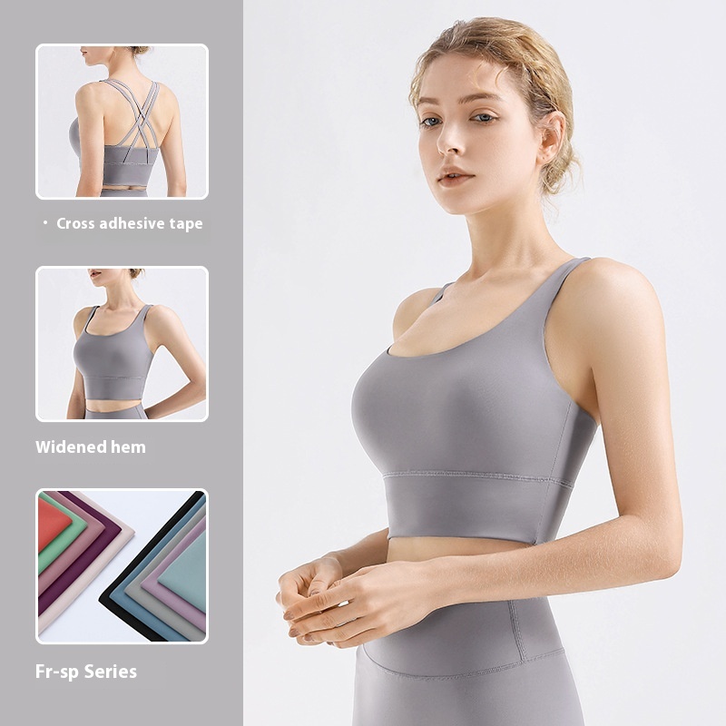 High-strength Double Shoulder Strap Shock-absorbing Sports Bra Cross Beautiful Back Nude Fitness Yoga Bra For Women