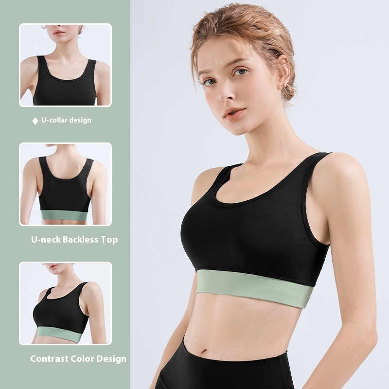 Style Nude Contrast Color Sports Bra For Women Three-dimensional Big Chest U-shaped Beautiful Back Running Fitness Bra