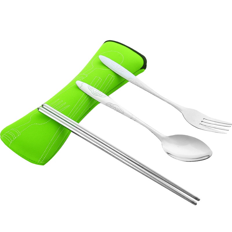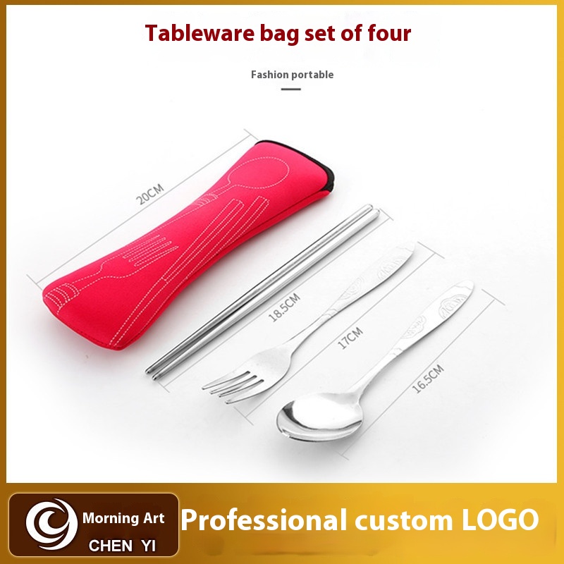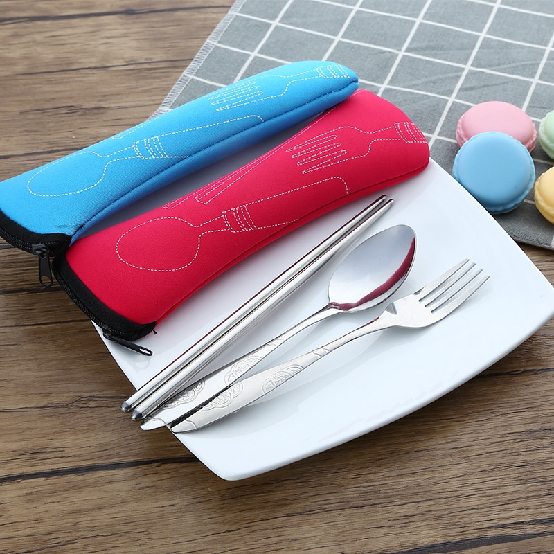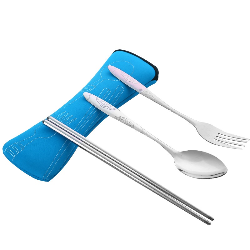 Stainless Steel Tableware Three-piece Outdoor Portable Tableware Set Pillow Bag Bone Bag Tableware Gift