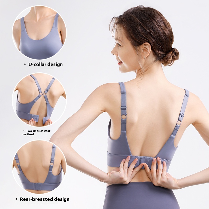 Women's Sports Bra One-piece Fixed Cup Side Breast Collection Breathable Double Shoulder Straps Yoga Wear Fitness Running Underwear