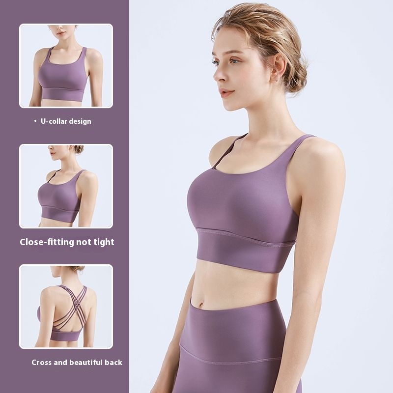Fr-sp Medium Strength Shock Absorption Pilates Yoga Bra Cross Beautiful Back Gathered Side Breast Sports Underwear Female