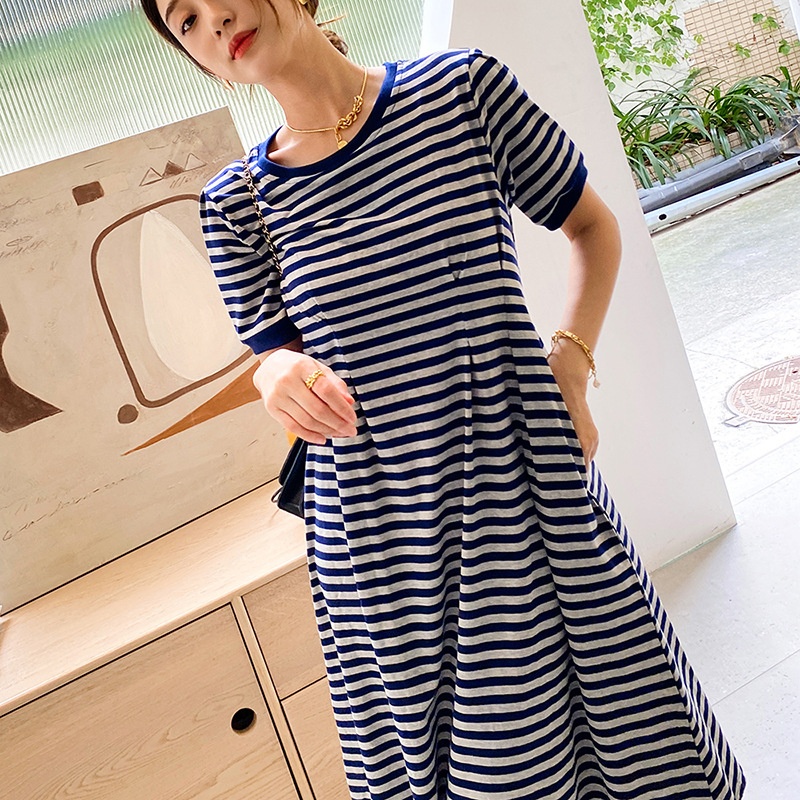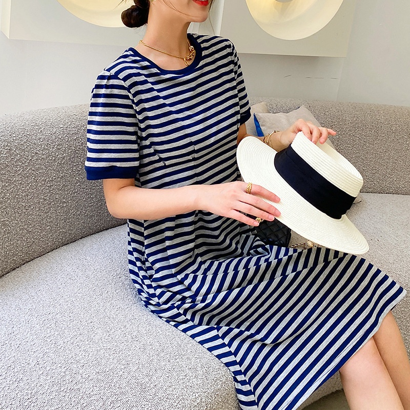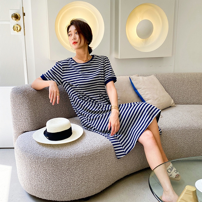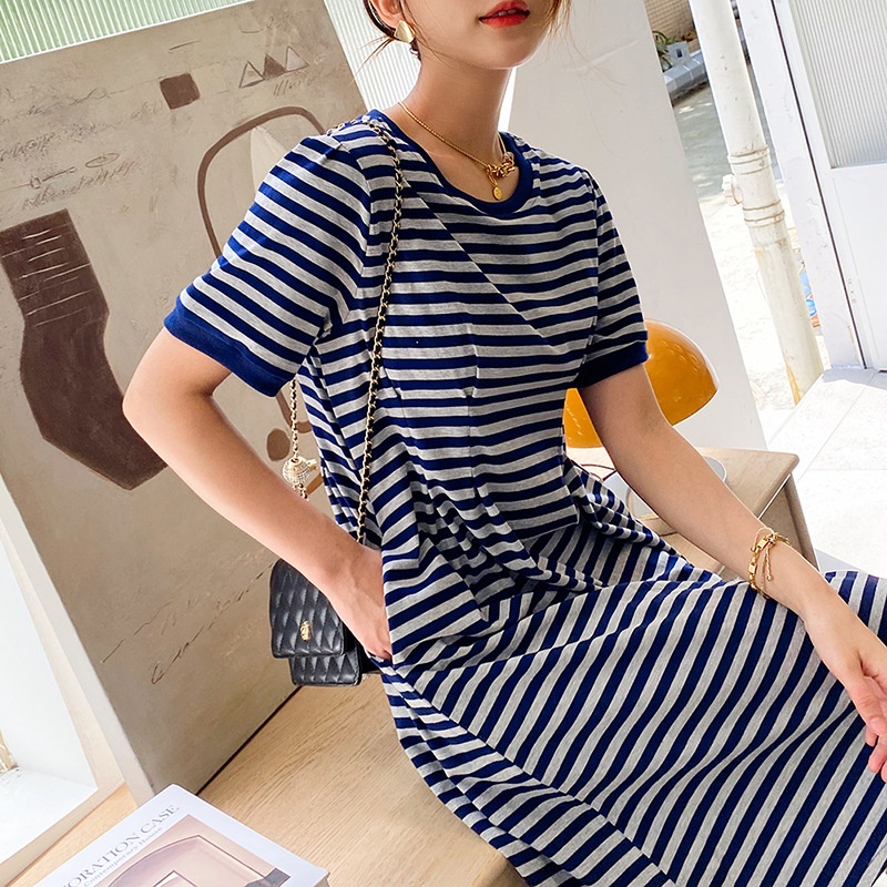 Spring And Summer Knitted Striped Dress Loose Mid-length Skirt Korean Style Casual Women's Mid-length Skirt Korean Dongdaemun