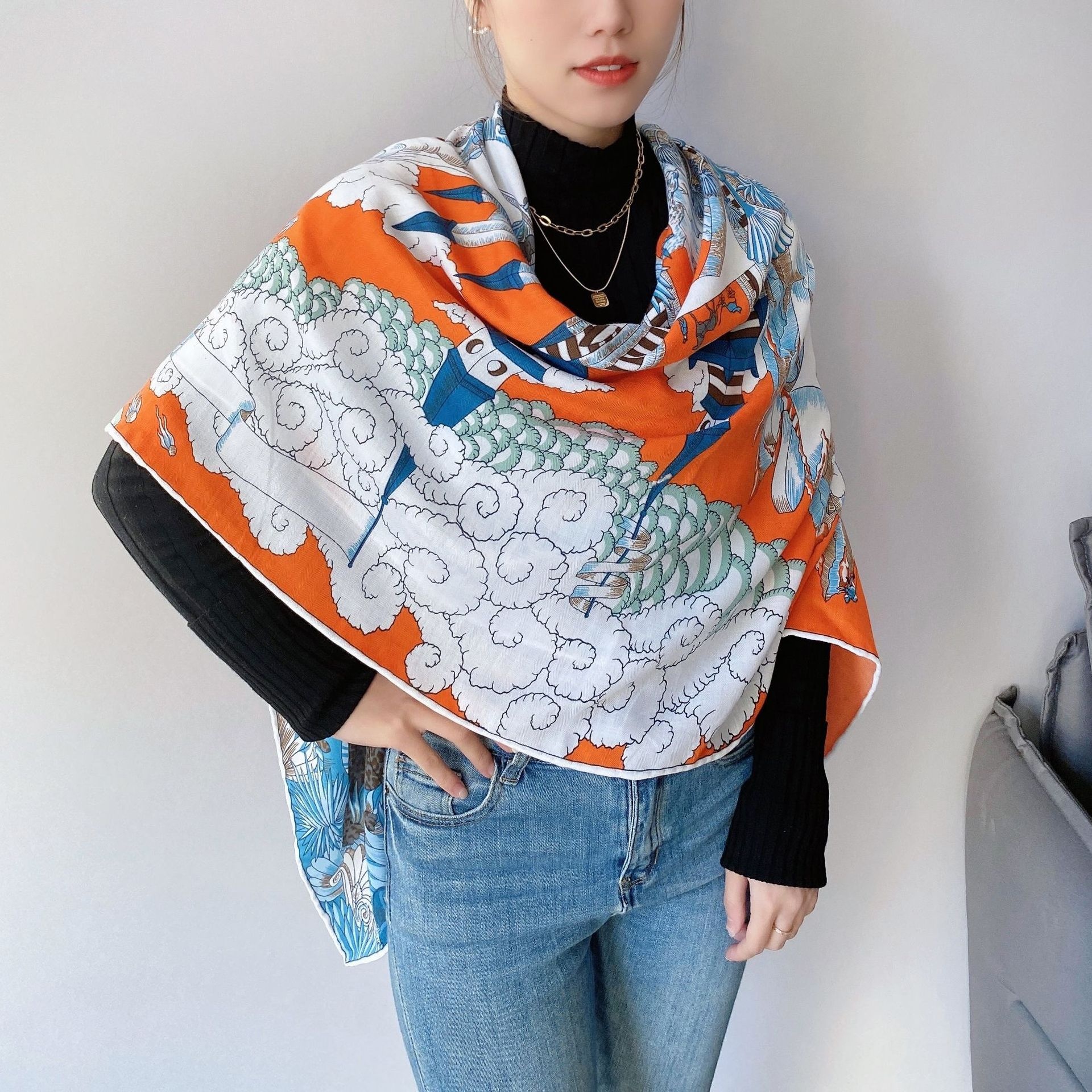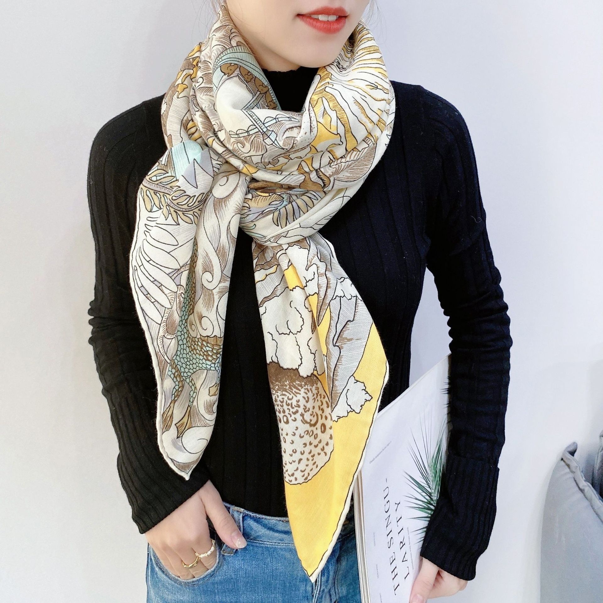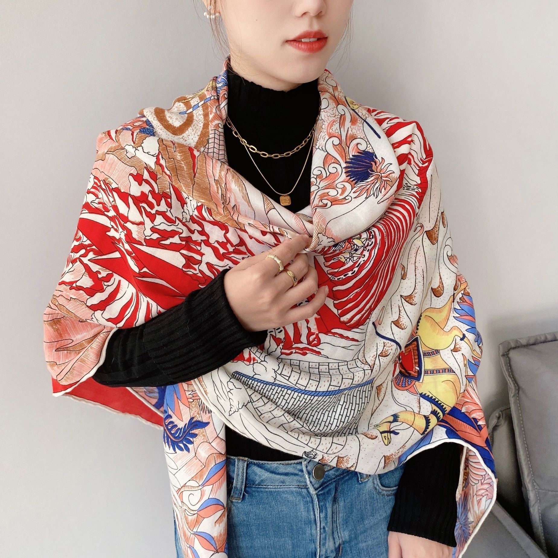Spring And Summer Scarf130cm Decorative Shawl Printed Large Square Scarf Fashionable And Versatile Korean Hot-selling Scarf