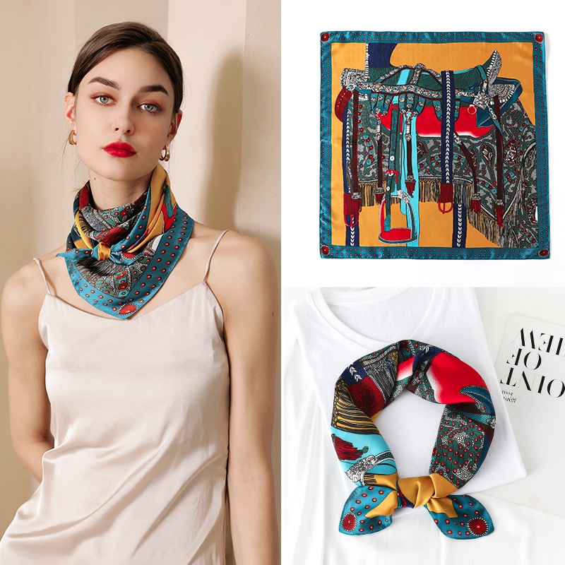 Saddle Dot Print Silk Scarf For Women Japanese And Korean Sweet Imitation Silk Spring70 Square Scarf Bag Silk Scarf For Women