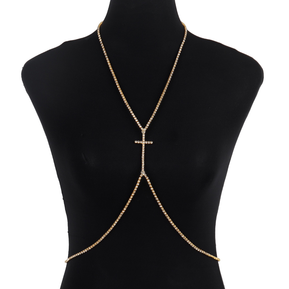 European And American Accessories Cross Sexy Chest Chain Nightclub Rhinestone Pendant Body Chain Simple Body Chain