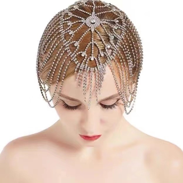 Exclusive Luxury Heavy-duty Hair Chain Tassel Water Diamond Head Chain Bridal Headdress Mesh Claw Chain Hair Accessories