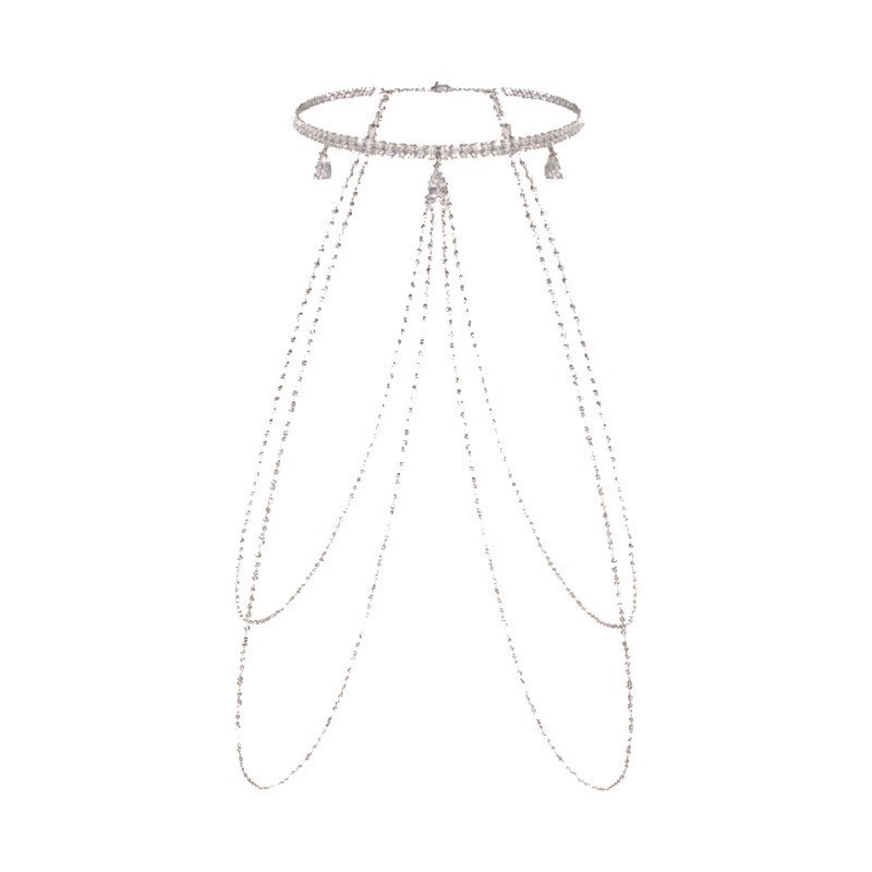 Small Chanel Style Diamond Hanging Neck Long Tassel Body Chain Necklace Rhinestone Chain Full Body Waist Chain Accessories Sexy Chest Chain