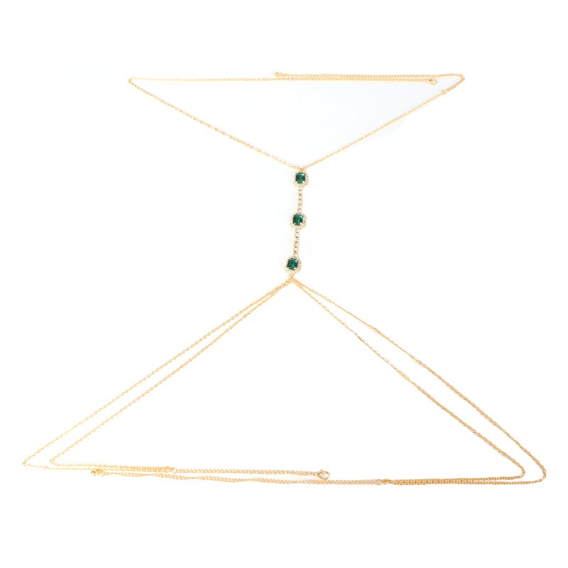 European And American Rhinestone Emerald Chest Chain Women's Sexy Fashion Simple Bikini Body Chain Body Chain