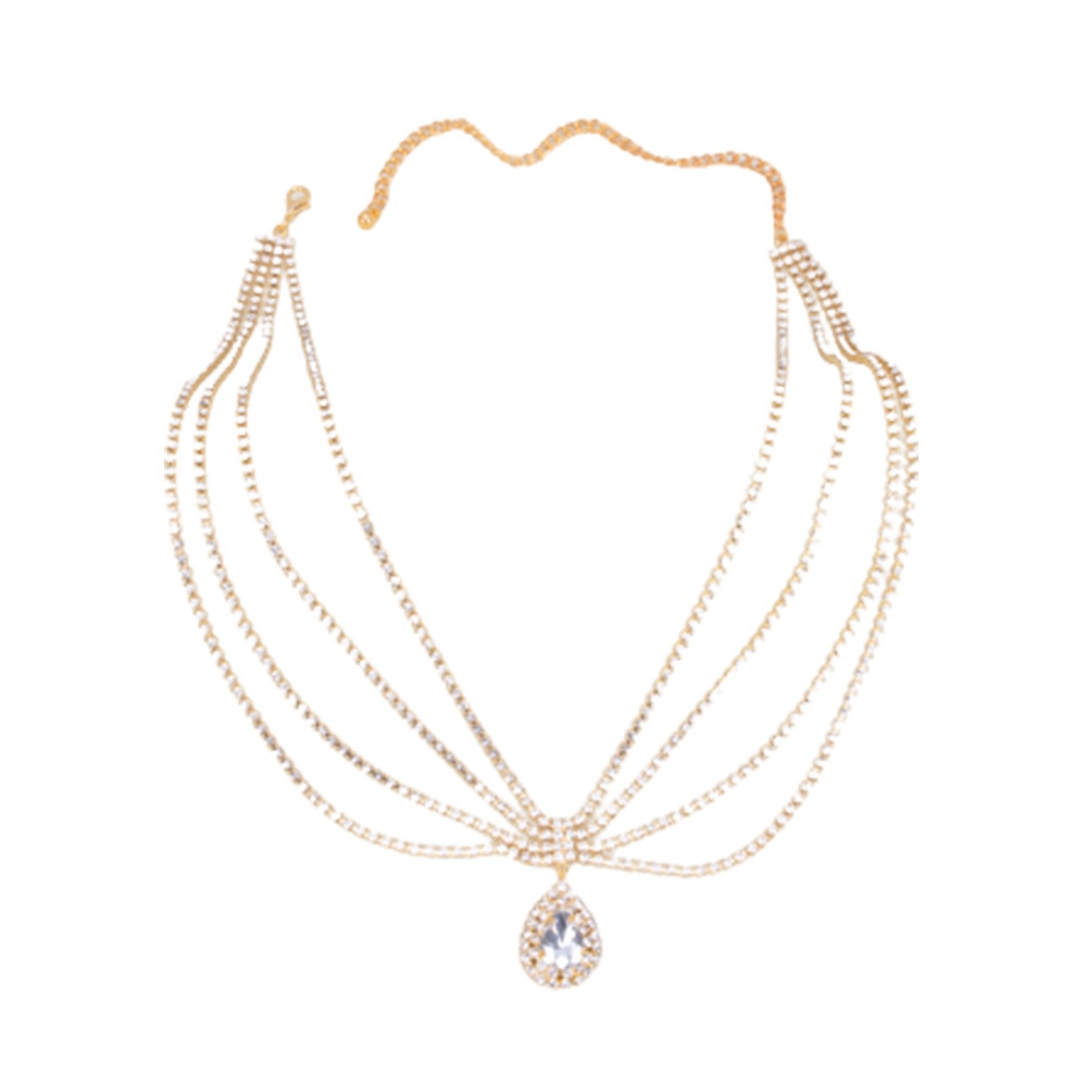 European And American Multi-layer Water Drop Headdress Bohemian Style Fashion Water Drop Shiny Rhinestone Bridal Hair Chain Forehead Decoration Chain