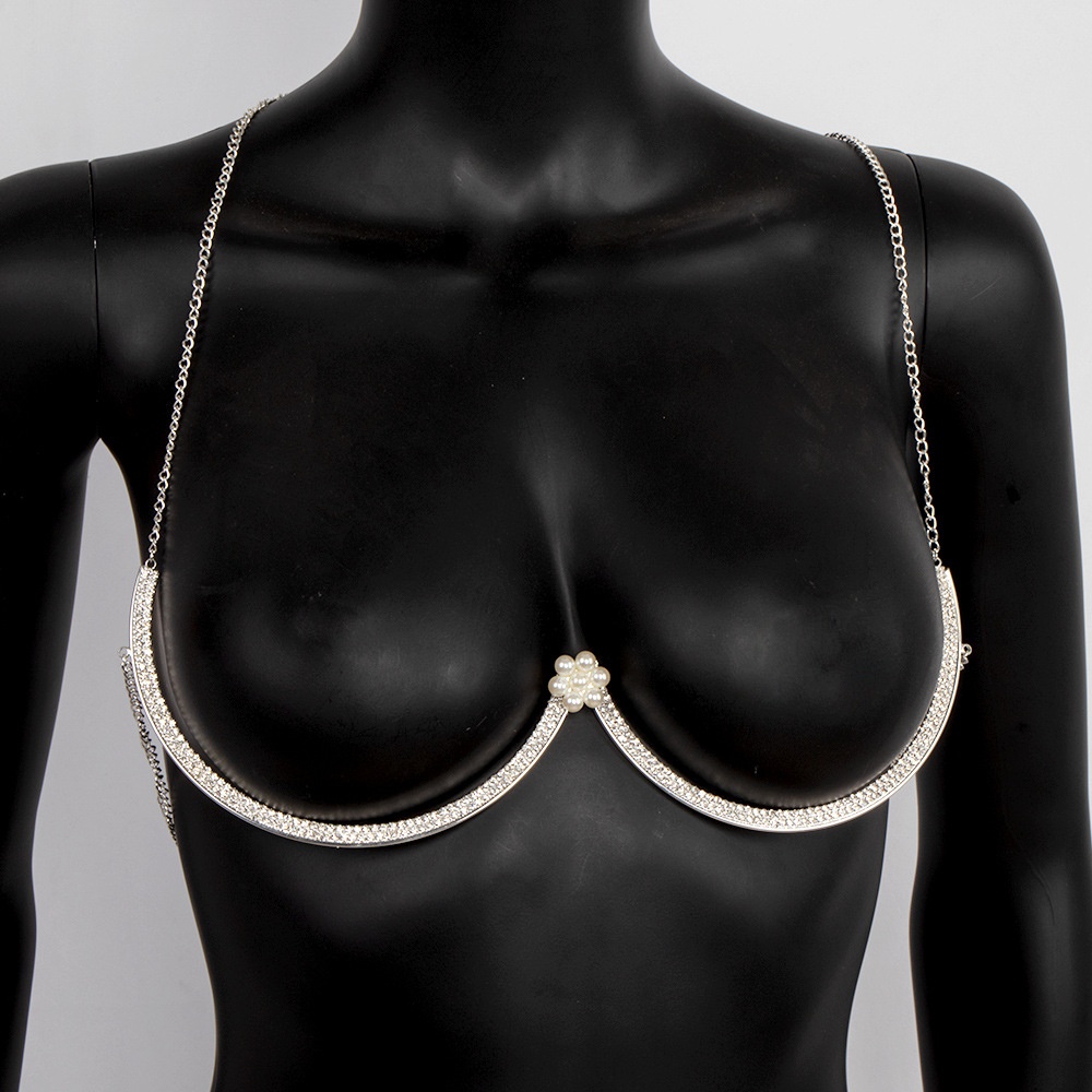 European And American Hot Flower-shaped Chest Support Sexy Bikini Rhinestone Chest Chain Body Chain Female Body Chain