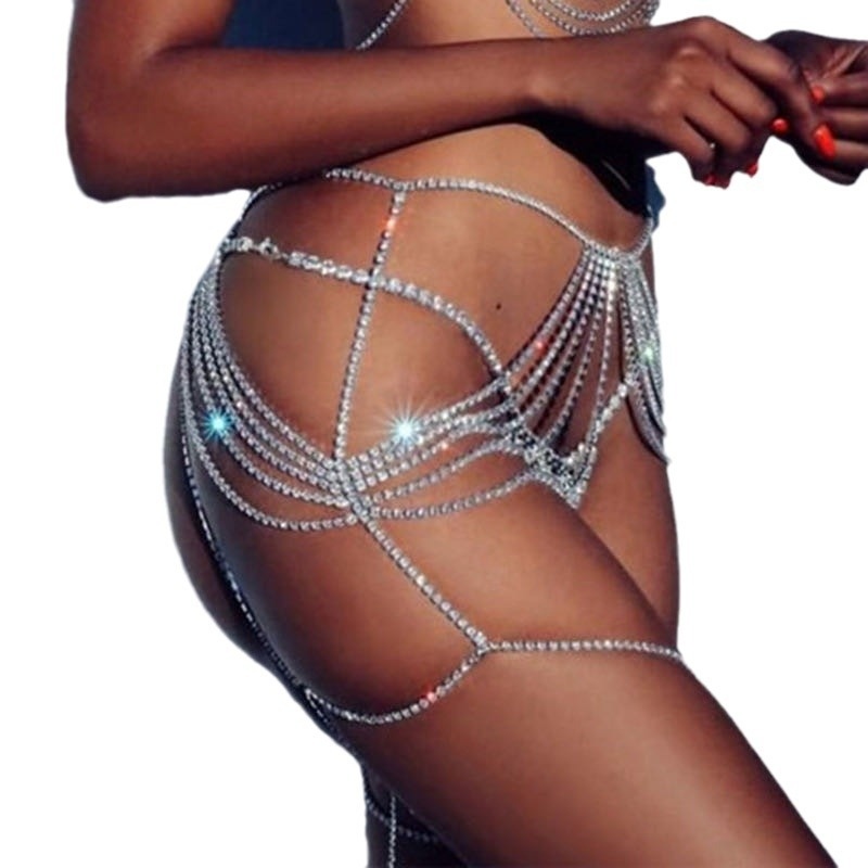 Hot-selling Chest Chain Jewelry Sexy Nightclub Fashion Shiny Full Diamond Bra Panties Bikini Body Chain Set