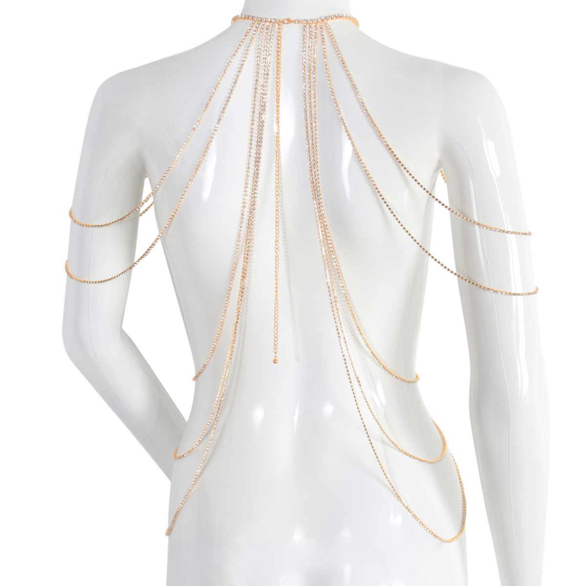 European And American Body Large Size Chest Chain Fashion Luxury Shiny Rhinestone Long Tassel Dress Accessories Body Chain Shoulder Chain