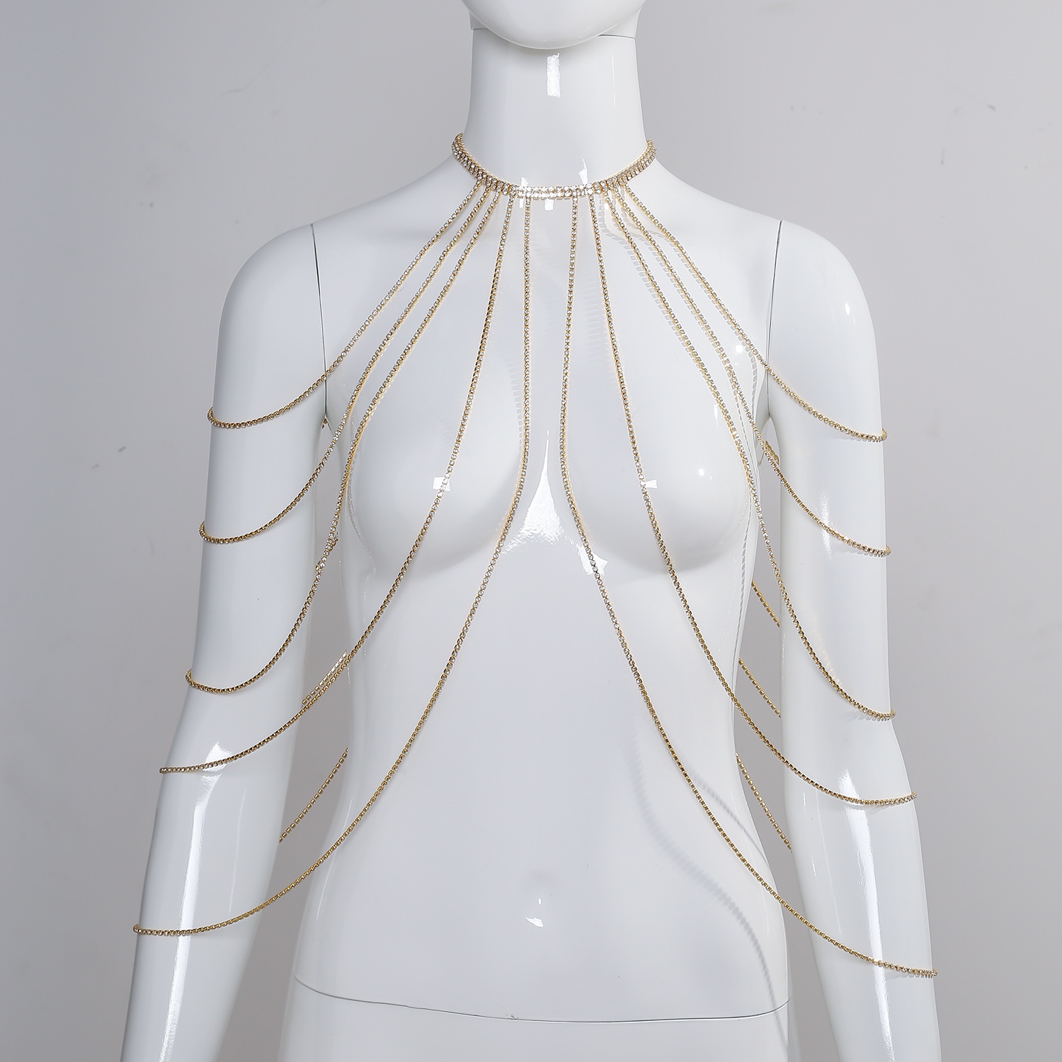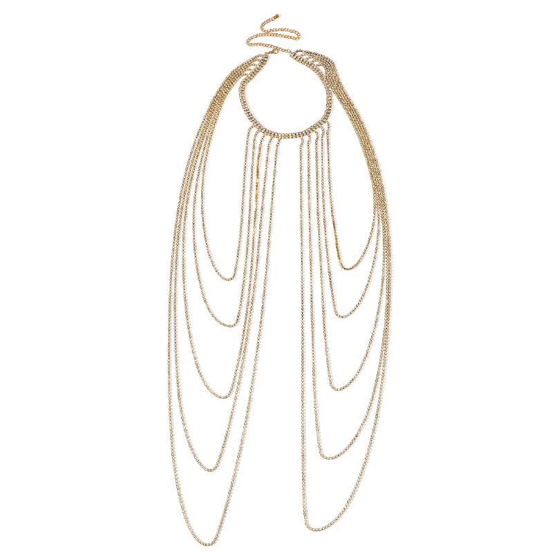 Temperament Geometric Tassel Shiny Rhinestone Body Chain Shoulder Chain Accessories European And American Nightclub Sexy Chest Chain Accessories Female