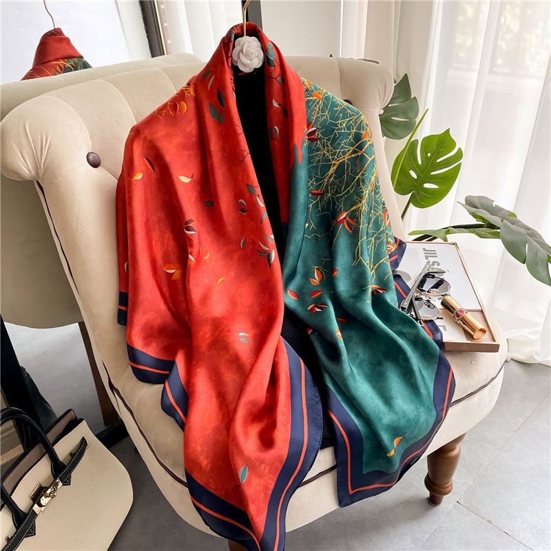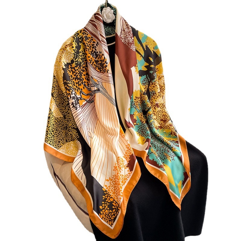 National Landscape Trees Large Silk Scarf Travel Sunscreen Silk Scarf Simulation Silk Shawl Fashion Women's Beach Towel