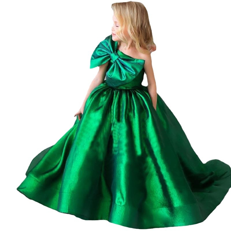 High-end Satin Dress Children's Formal Banquet Girls Birthday Catwalk Evening Dress Summer