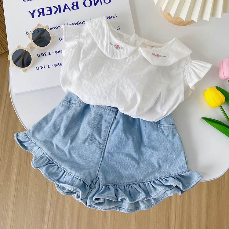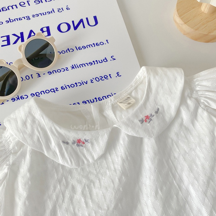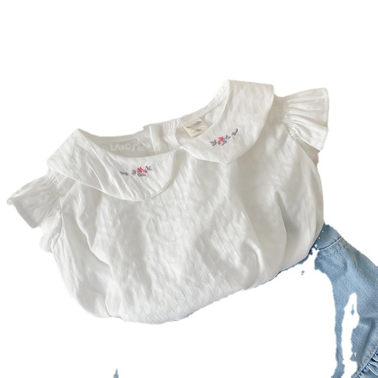 Summer Girls Short-sleeved Shirt Baby Stylish Children's Personality Korean Version Embroidered Flower Doll Collar White Shirt