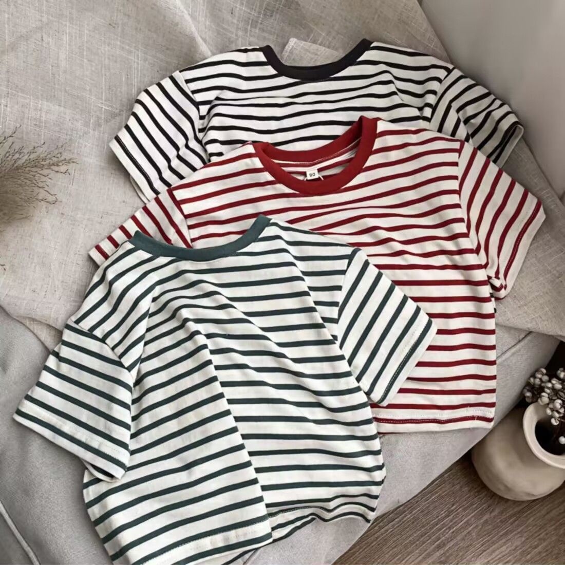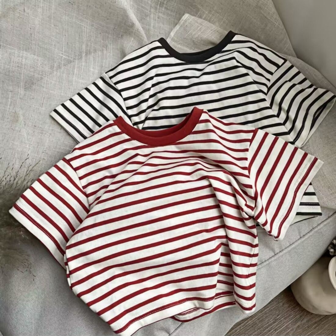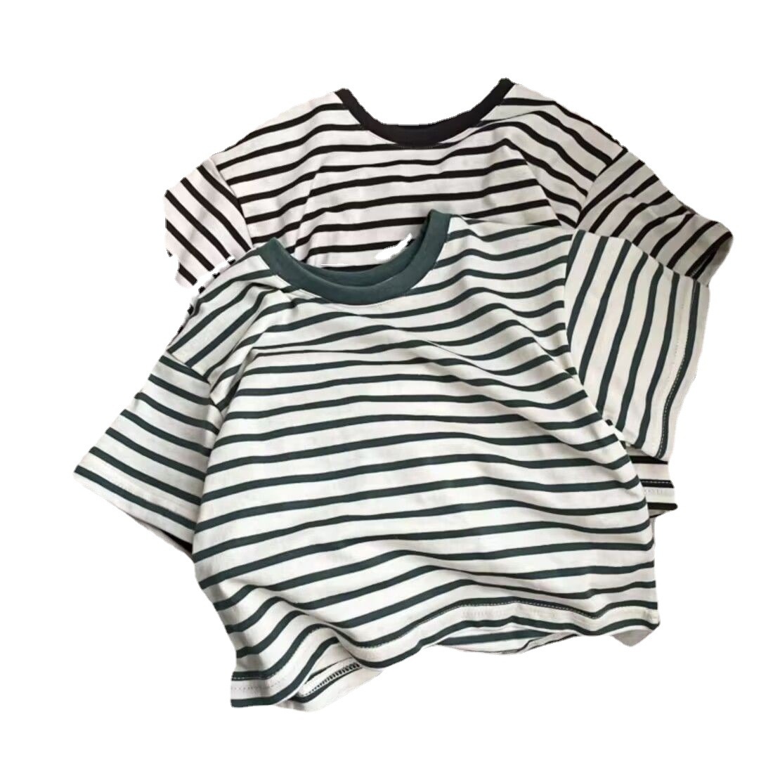 Summer Girls Short-sleeved T-shirt Baby Stylish Children's Personalityy Korean Version Of Color Matching Stripes Fashionable Net Celebrity Top