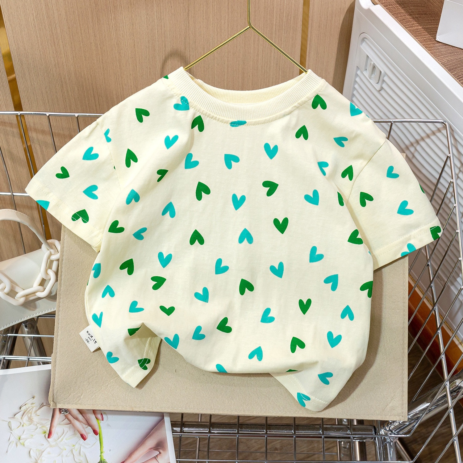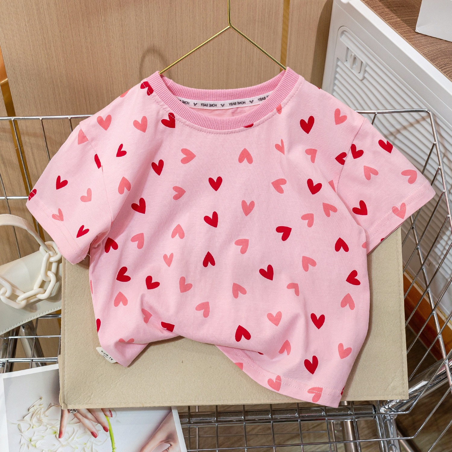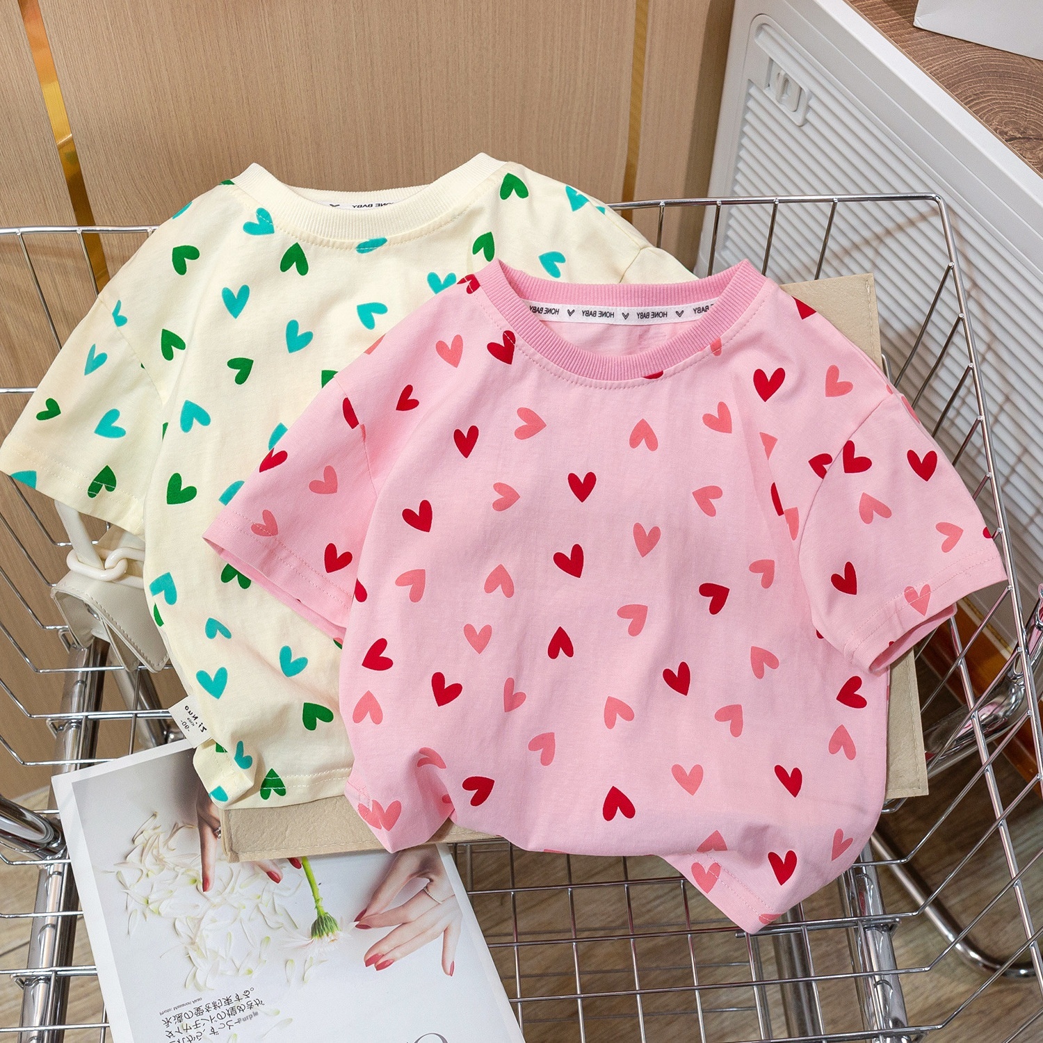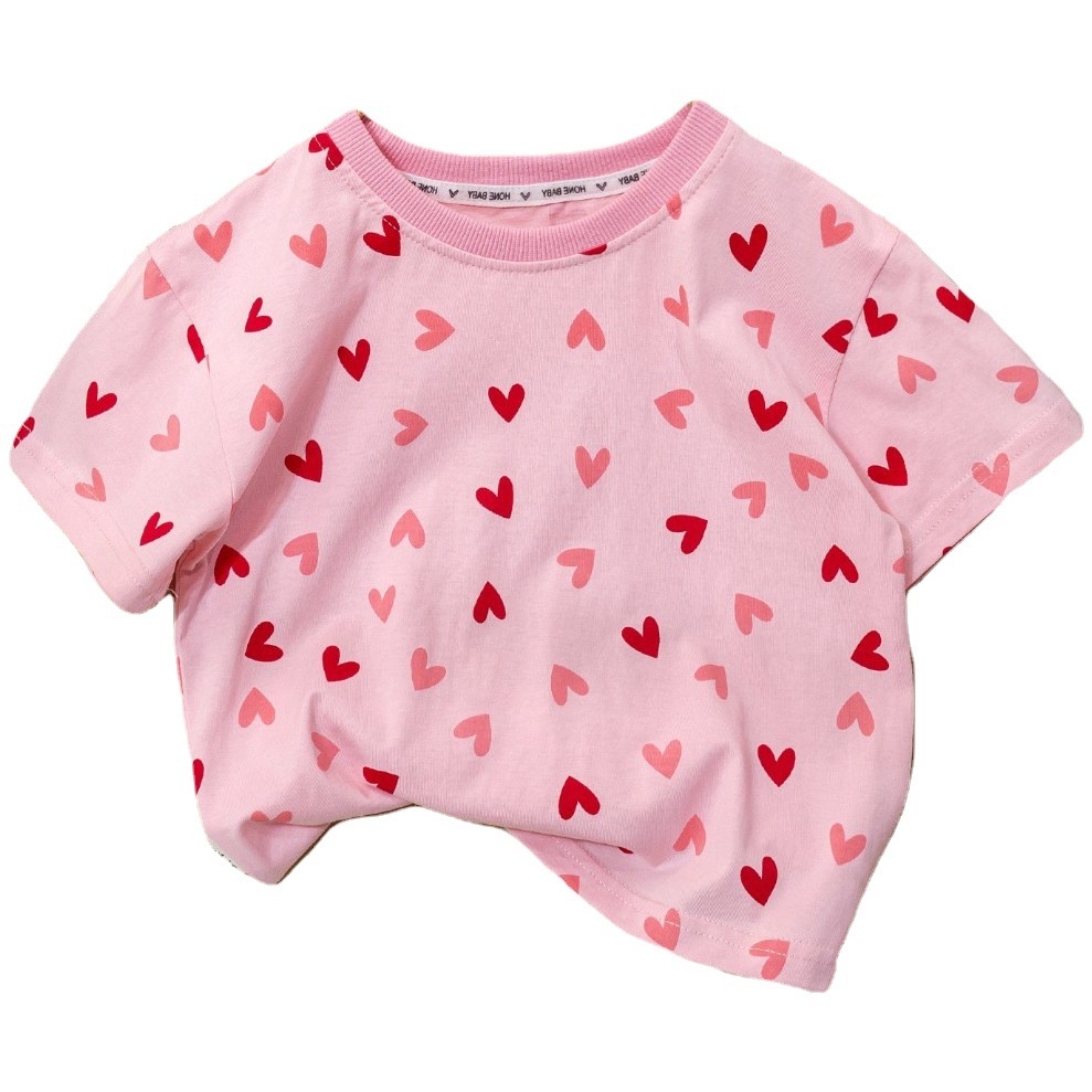 Summer Girls Short-sleeved T-shirt Baby Stylish Children's Personalityy Korean Version Full Print Love Fresh Half-sleeved Top
