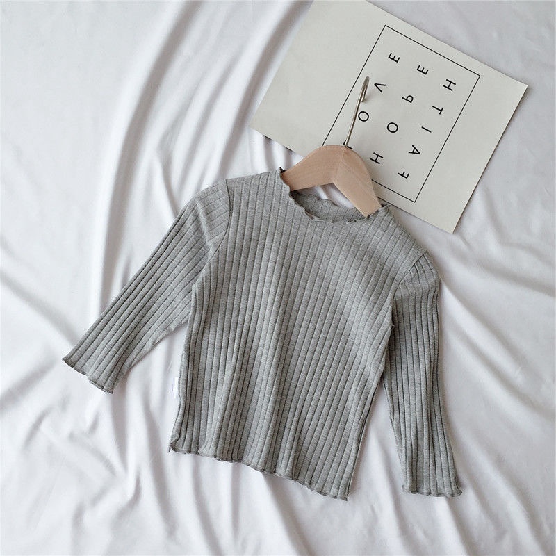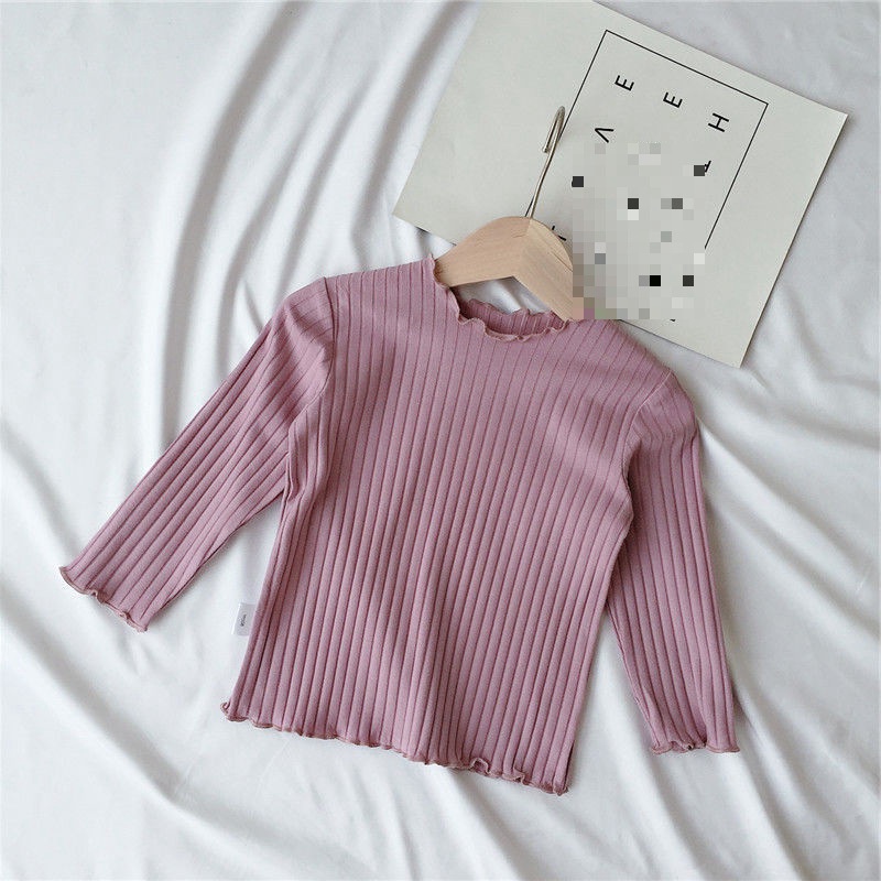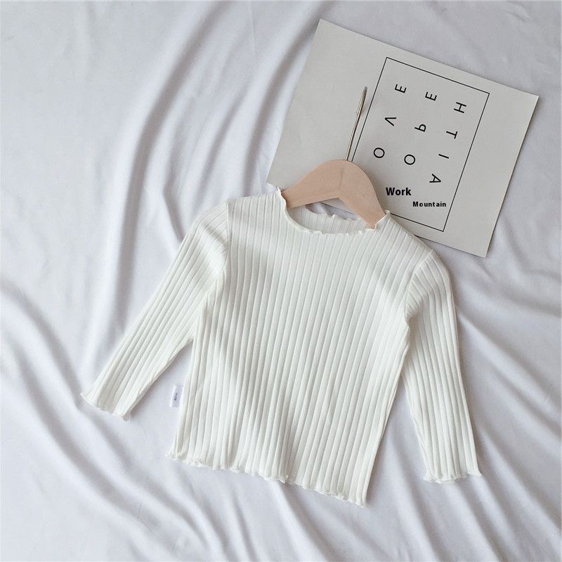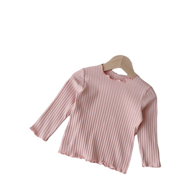 Spring And Autumn Girls'Bottoming Shirts For Babies,Fashionable Children's Personality,Korean Style,Ruffled Edges,Solid Color Inner And Outer Wear Tops