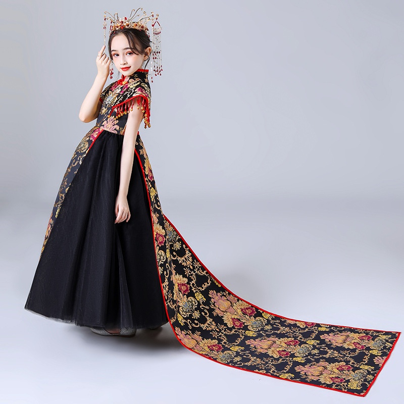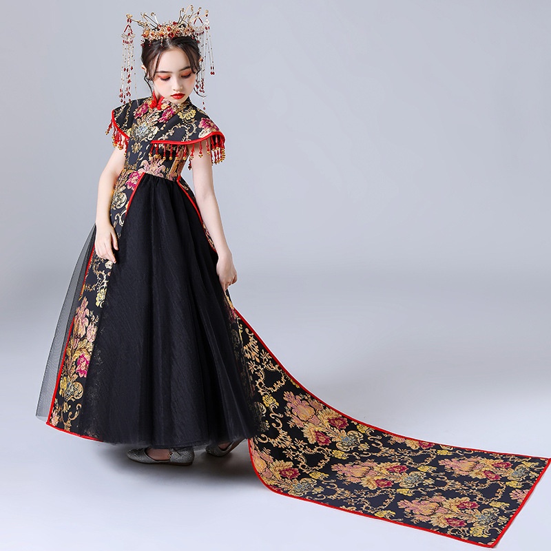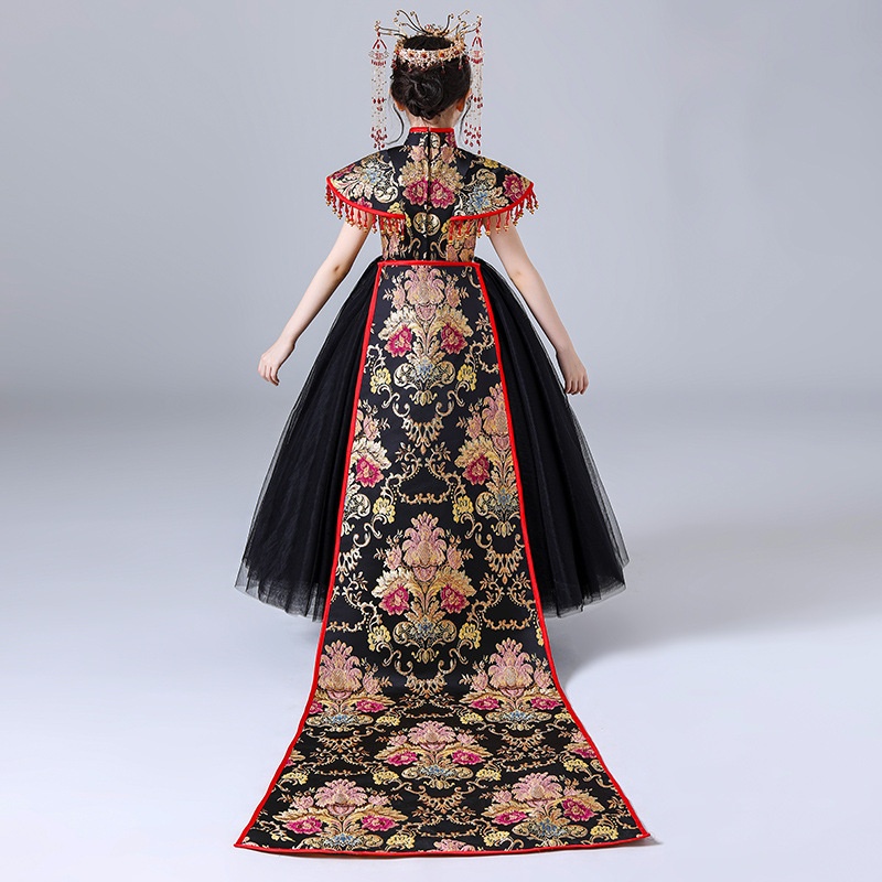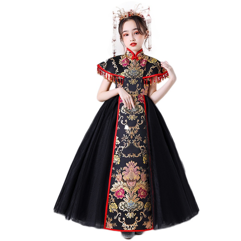 Girls Cheongsam Chinese Style Tang Suit Children's Model Fashionable Catwalk Domineering Performance Costume Big Child Tail National Tide Dress