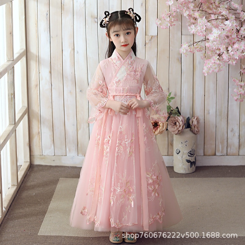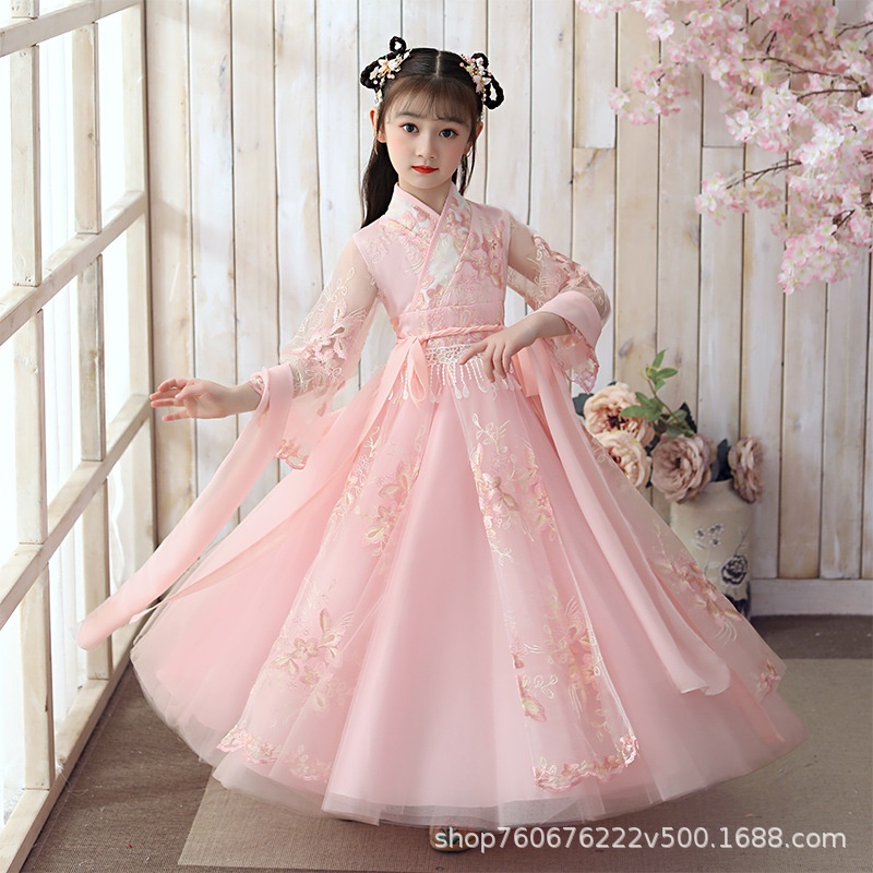 Children's Ancient Style Performance Costumes Spring And Summer Hanfu Waist Skirt Elegant Dance Skirt Girl Big Child Tang Suit Dress