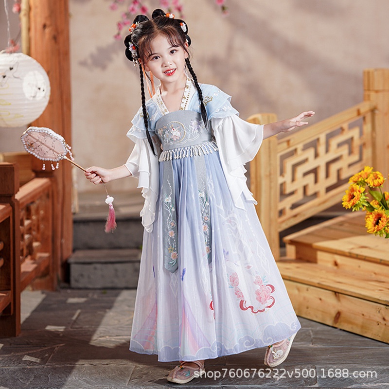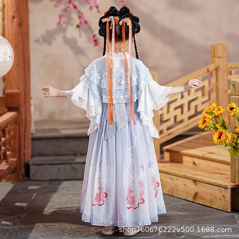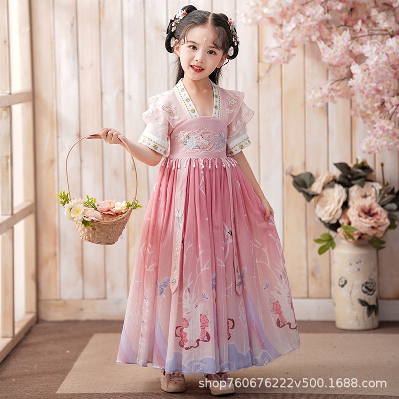 Girls Hanfu Ancient Costume Super Fairy Skirt Children Chinese Style Cherry Blossom Princess Skirt Little Girl Tang Suit Summer Dress