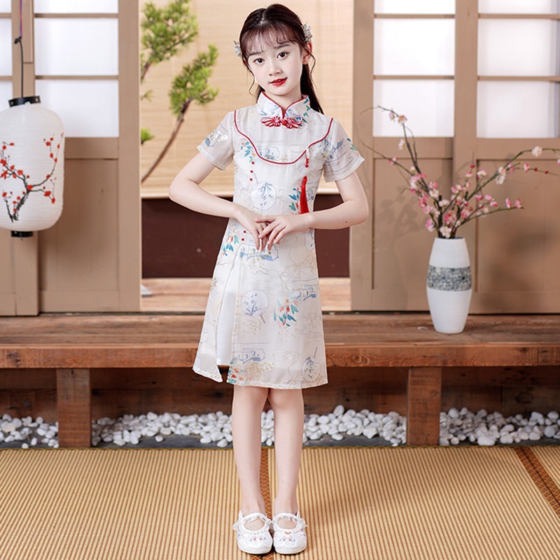 Girls Modified Cheongsam Summer Little Girl Western Style Princess Dress Spring And Summer Republic Of China Style Children's Dress