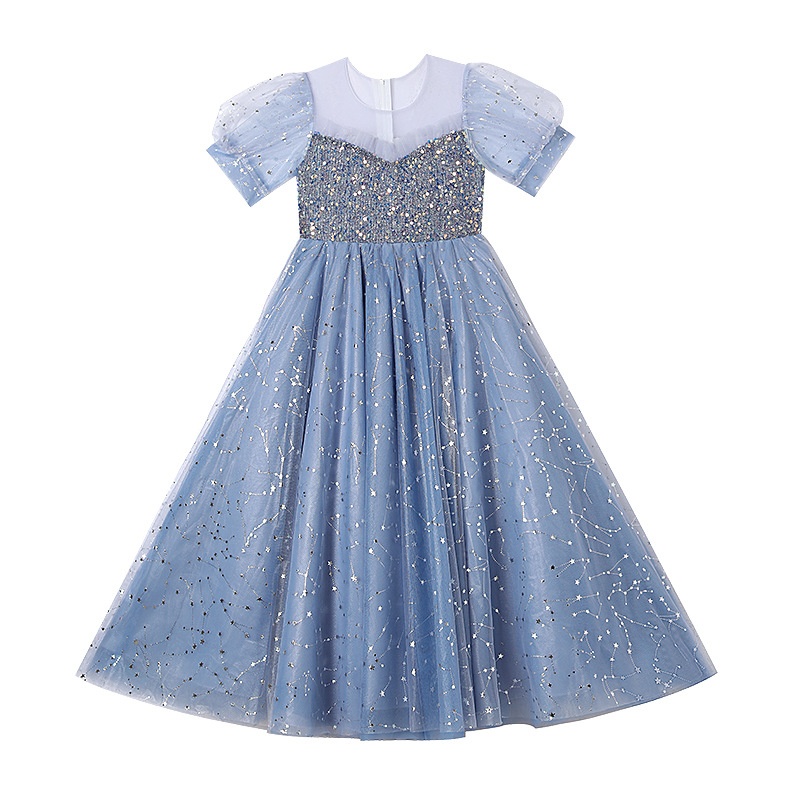 Princess Style Puff Sleeves High-end Host Performance Costumes Children's Wedding Dress Evening Dress Summer Middle And Large Children Catwalk Piano