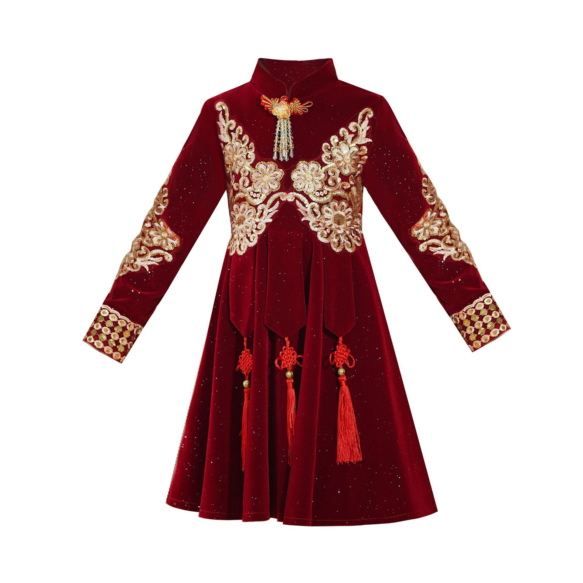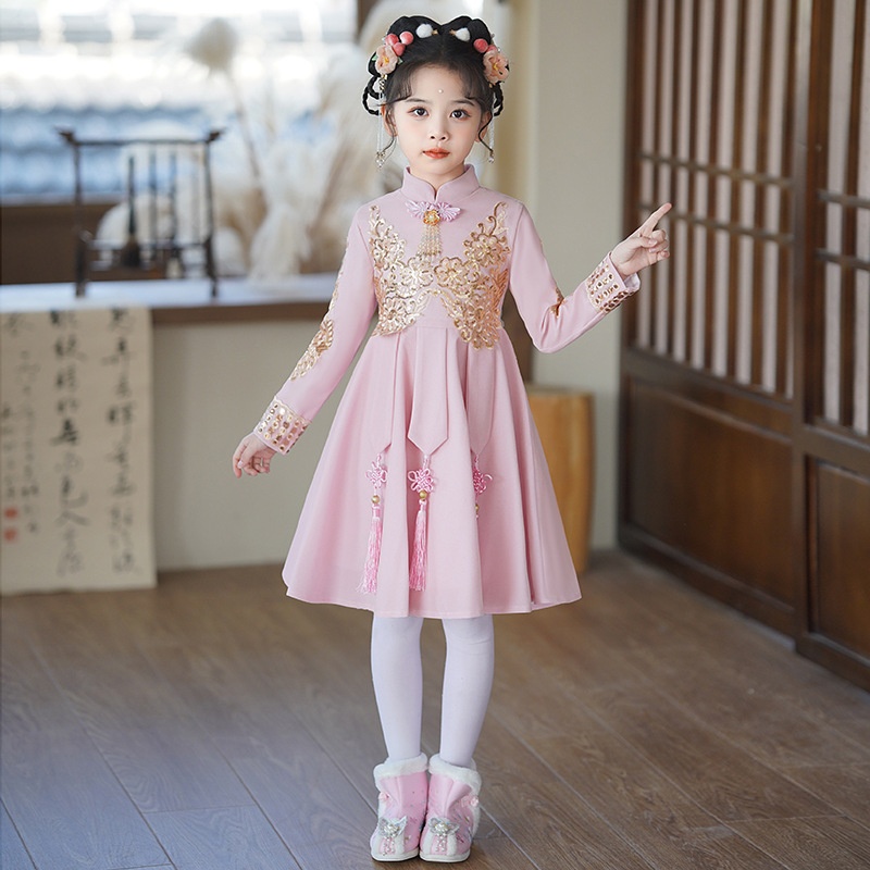 Hanfu Girls Dress Children's Year's Dress Tang Suit Chinese Style Little Girl Year Dress Skirt Winter Short Style
