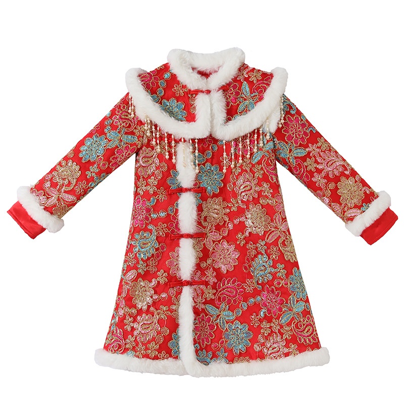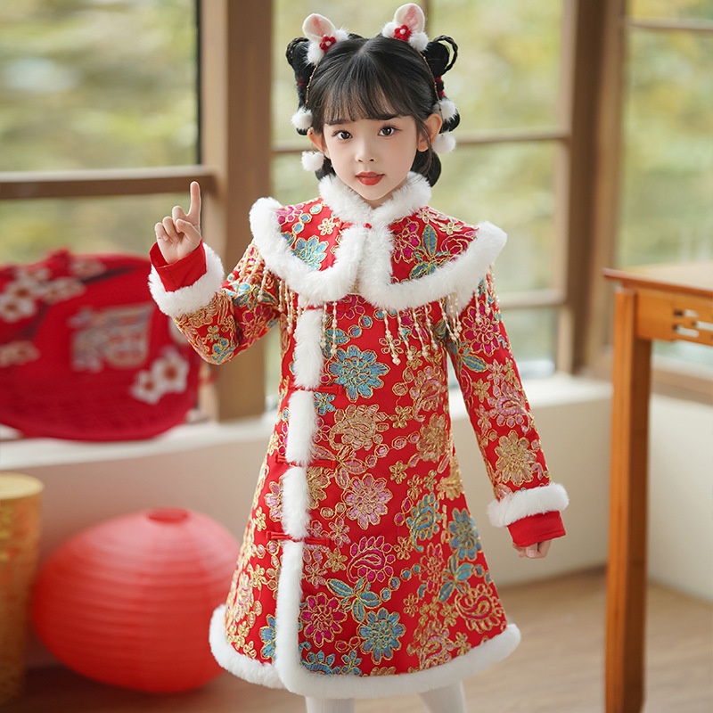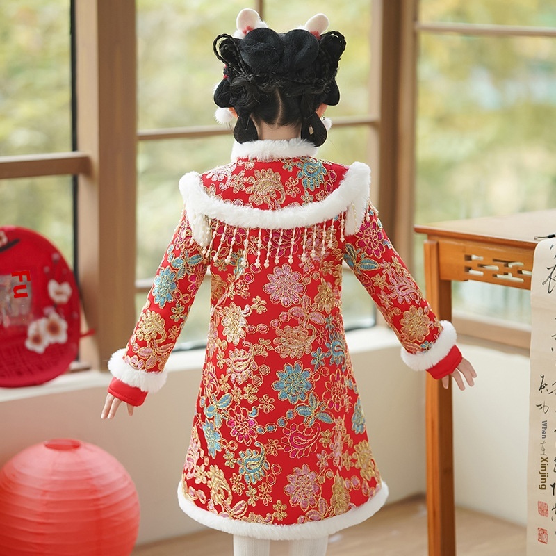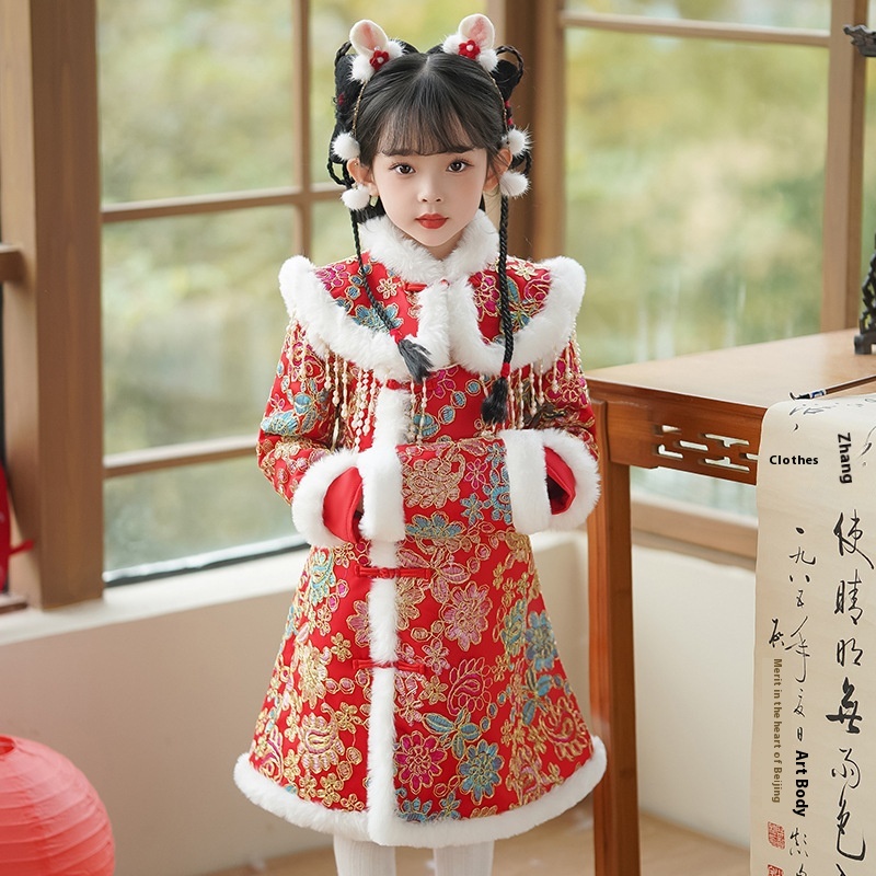 Girls Hanfu Dress Winter Chinese Style Children's Tang Suit Little Girl Plus Velvet Thickened Year's Celebration Dress