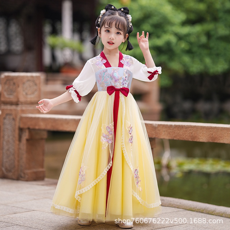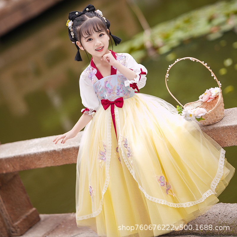 Summer Children's Super Fairy Tang Suit Girls Hanfu Chinese Style Little Girl Ancient Costume Dress Short Sleeve Elegant Thin Section