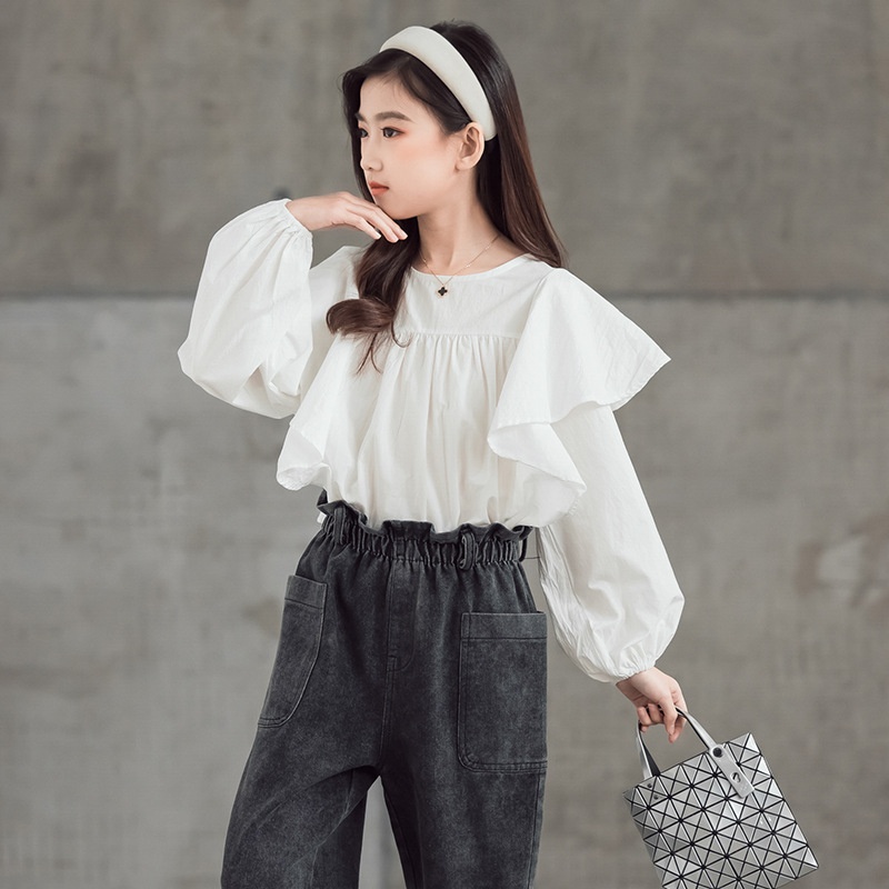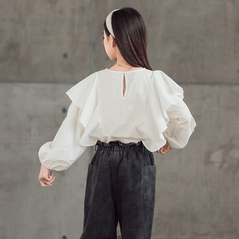 Girls Autumn Shirt Children's Loose Round Neck Long-sleeved Tops For Middle And Large Children Korean Version Parent-child Shirt