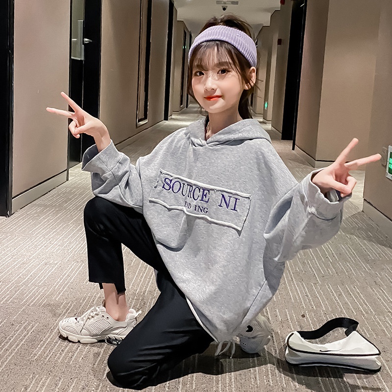 [Clearance Specials]Girls'Loose Sweatshirt Pullover For Children's Middle And Large Children Korean Style Western Style Little Girl Top