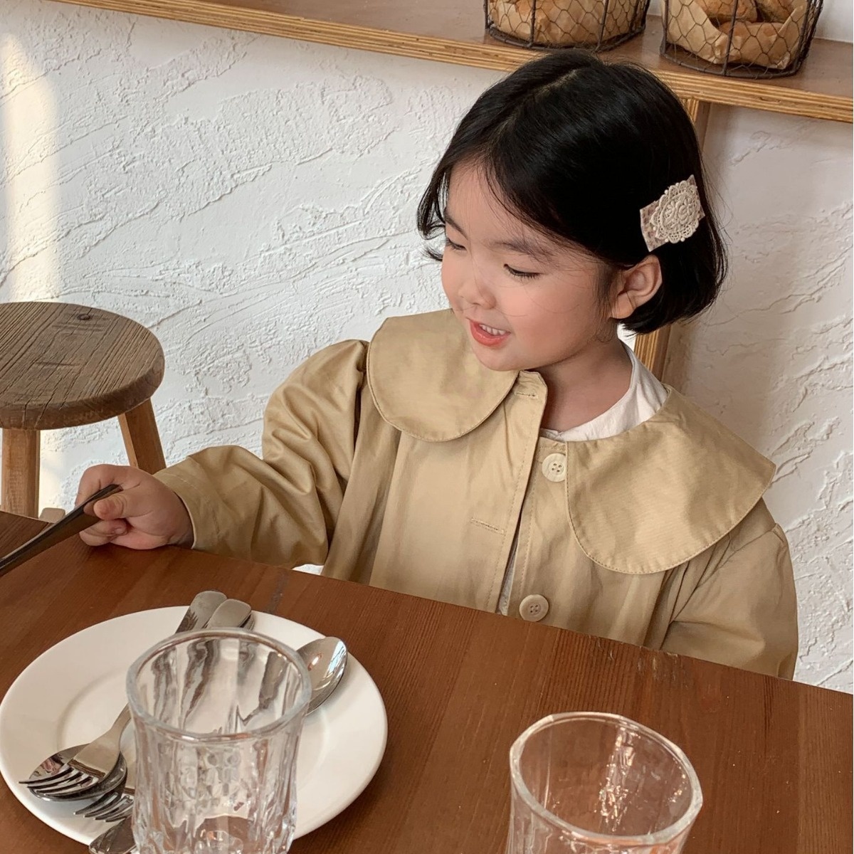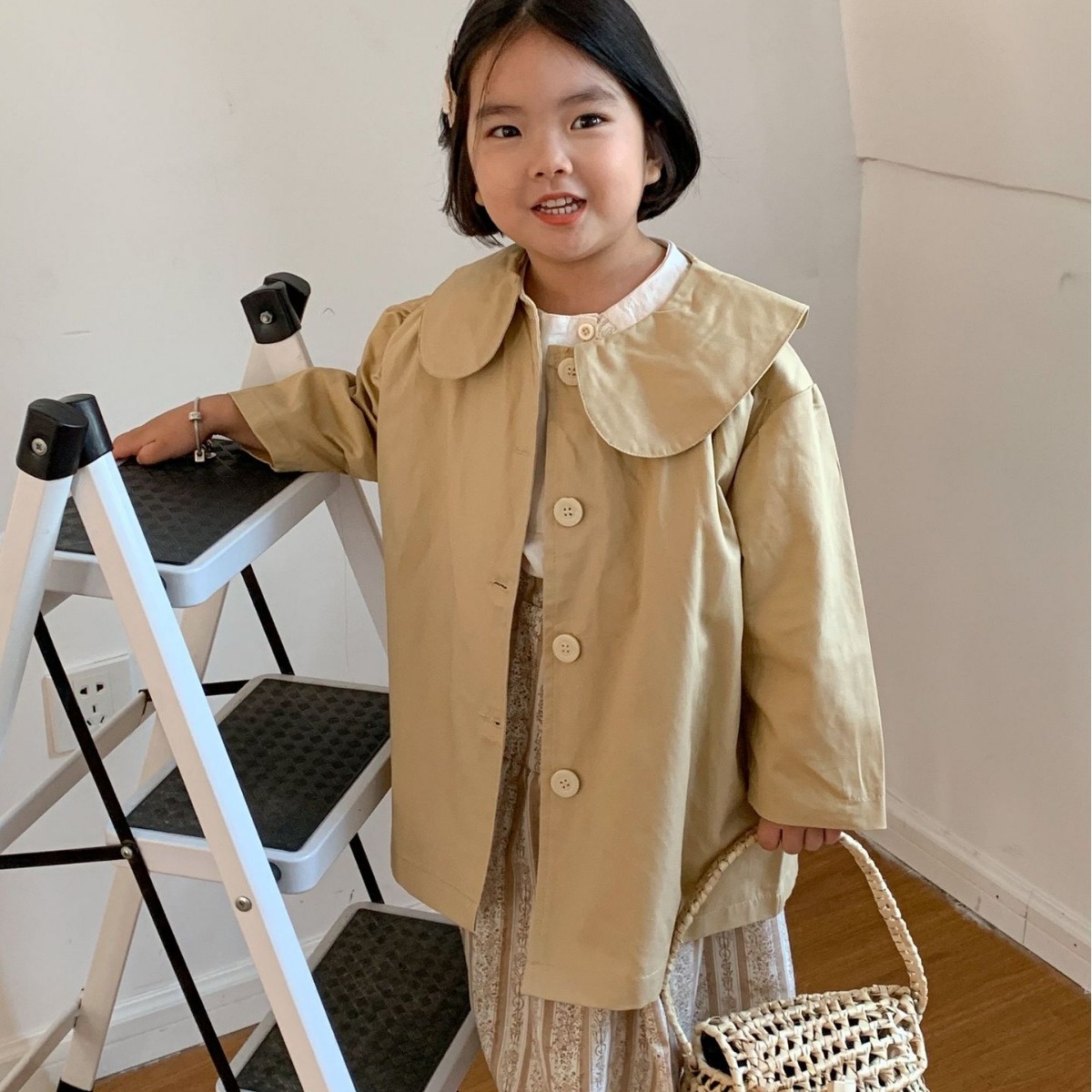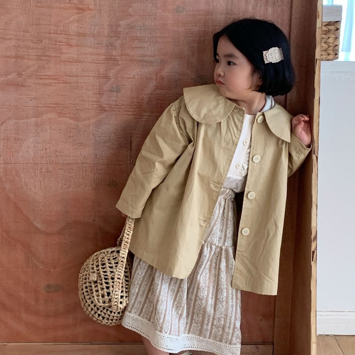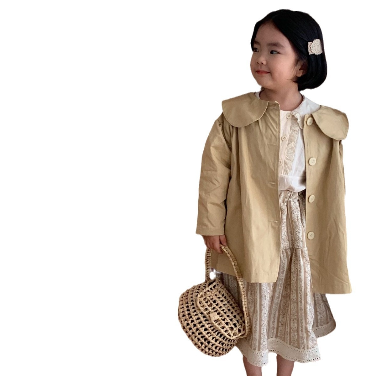 Children's Windbreaker Lai Baobao Spring Girl Korean Lapel Windbreaker Children's Mid-Length Single-Breasted Windbreaker Jacket
