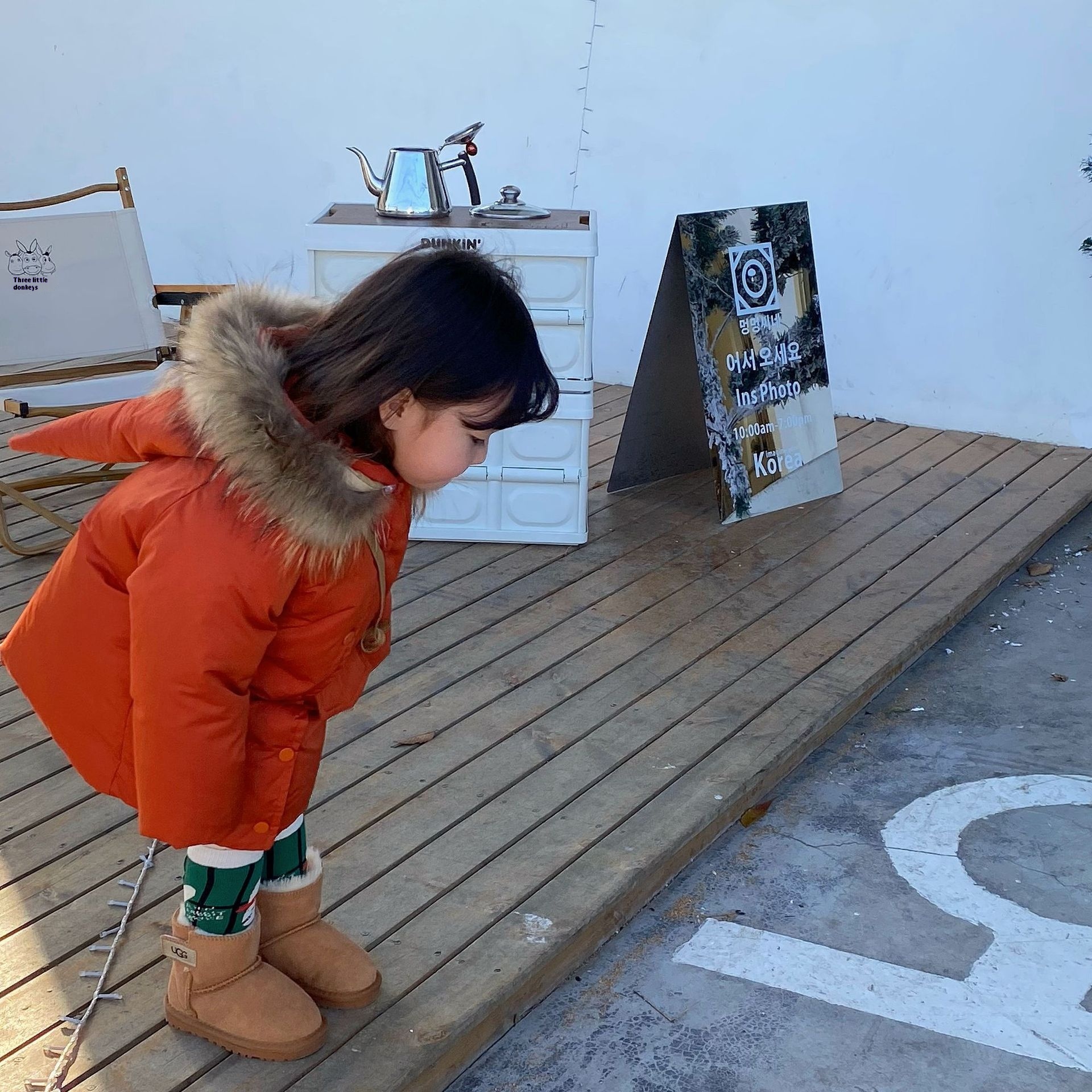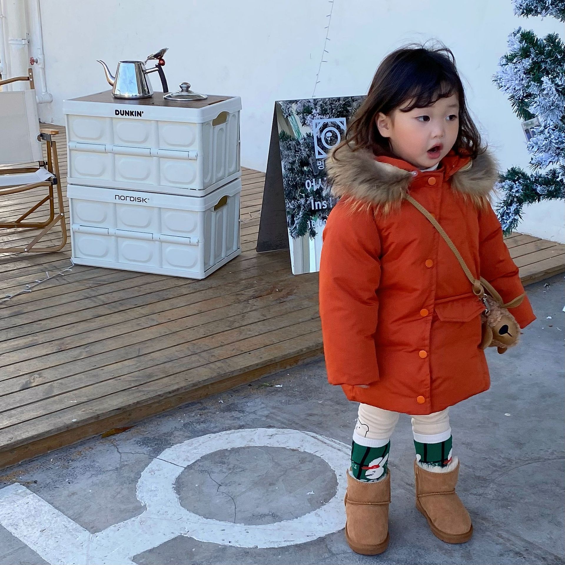 Laibaobao Winter Korean Children's Clothing Korean Version Raccoon Fur Big Fur Collar Cute Magic Pointy Hat Cotton Clothes