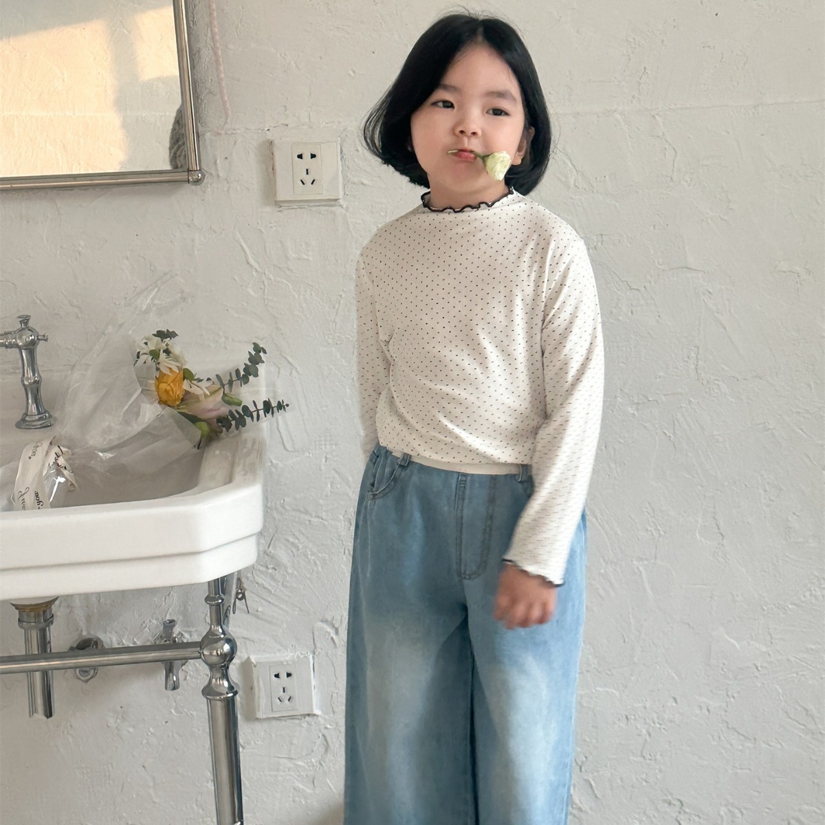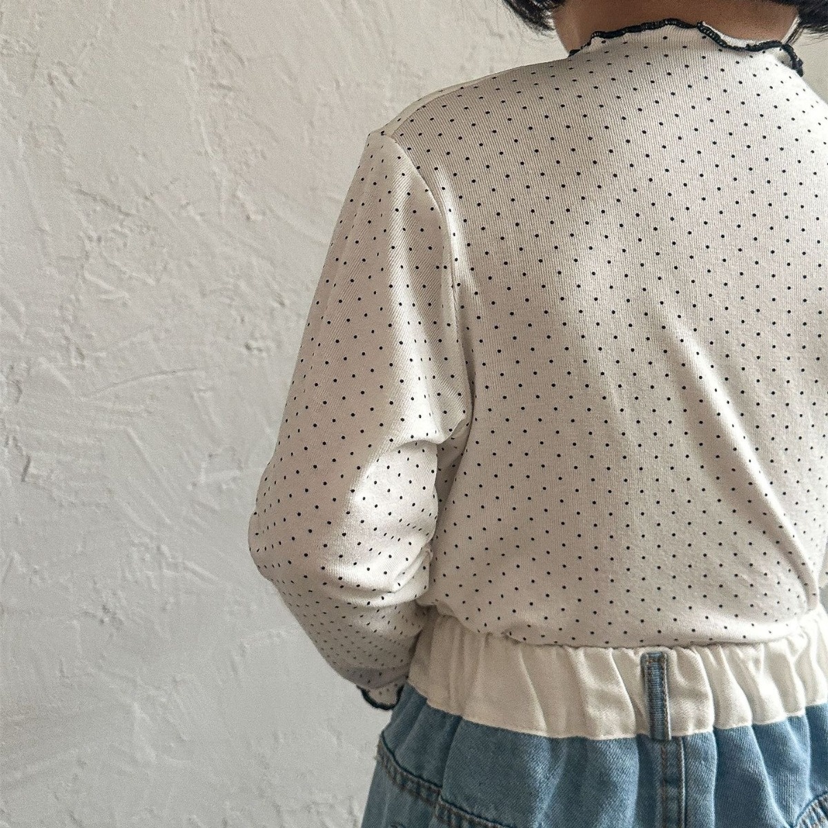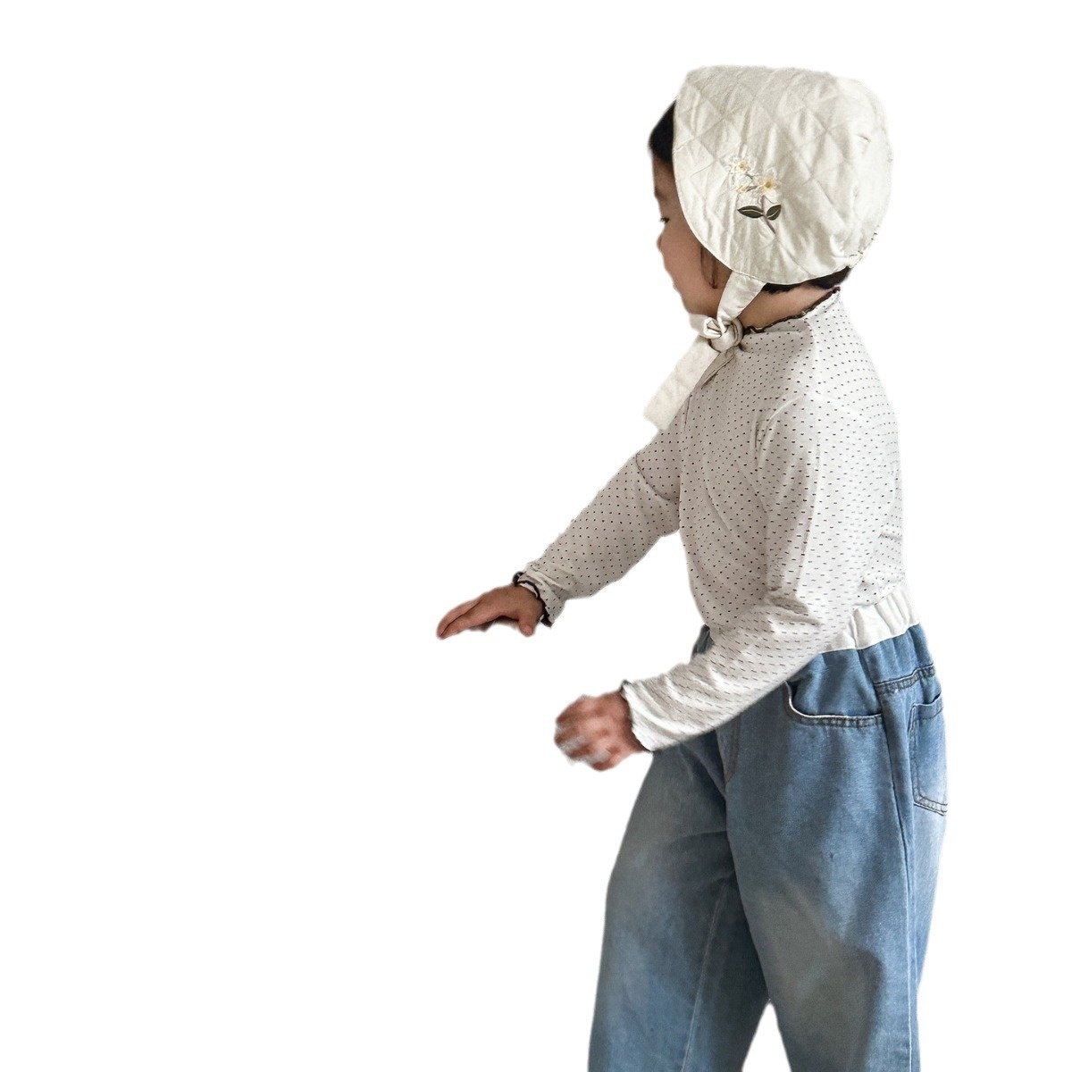 Children's Bottoming Shirt Spring Korean Version Girls Soft And Versatile Polka Dot T-shirt Children's Fungus Lace Collar Top