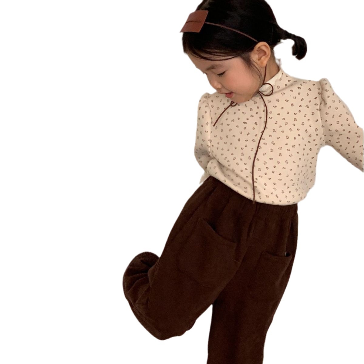 Children's Bottoming Shirt Laibaobao Winter Korean Children's Clothing Korean Version Of Floral Thickened One-piece Velvet Girls'Top