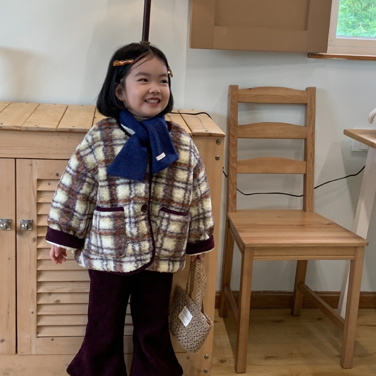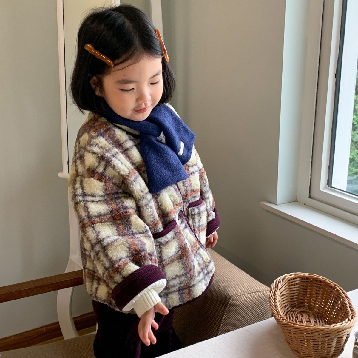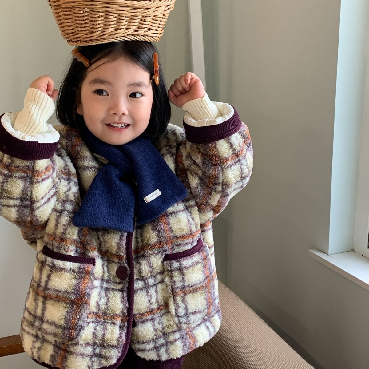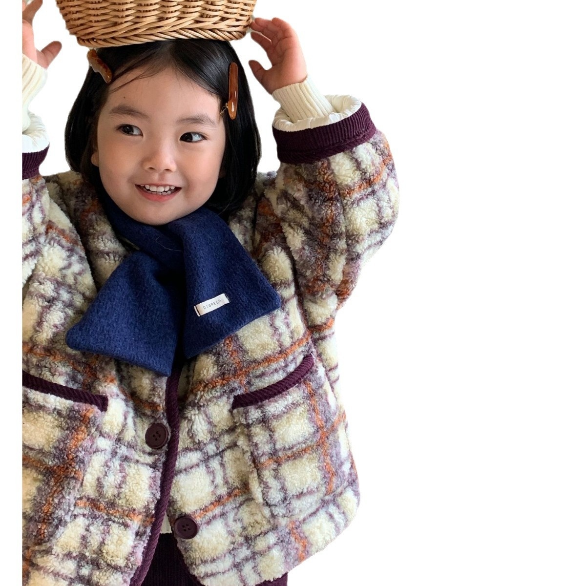 Children's Coat Laibaobao Winter Korean Children's Clothing Korean Version Plaid Thick Warm Girls Wool Top Plaid Control