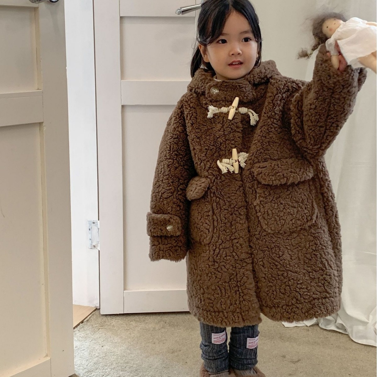 Children's Coat Laibaobao Winter Korean Children's Clothing Korean Style Stylish Thick Warm Long Girls Fur Top